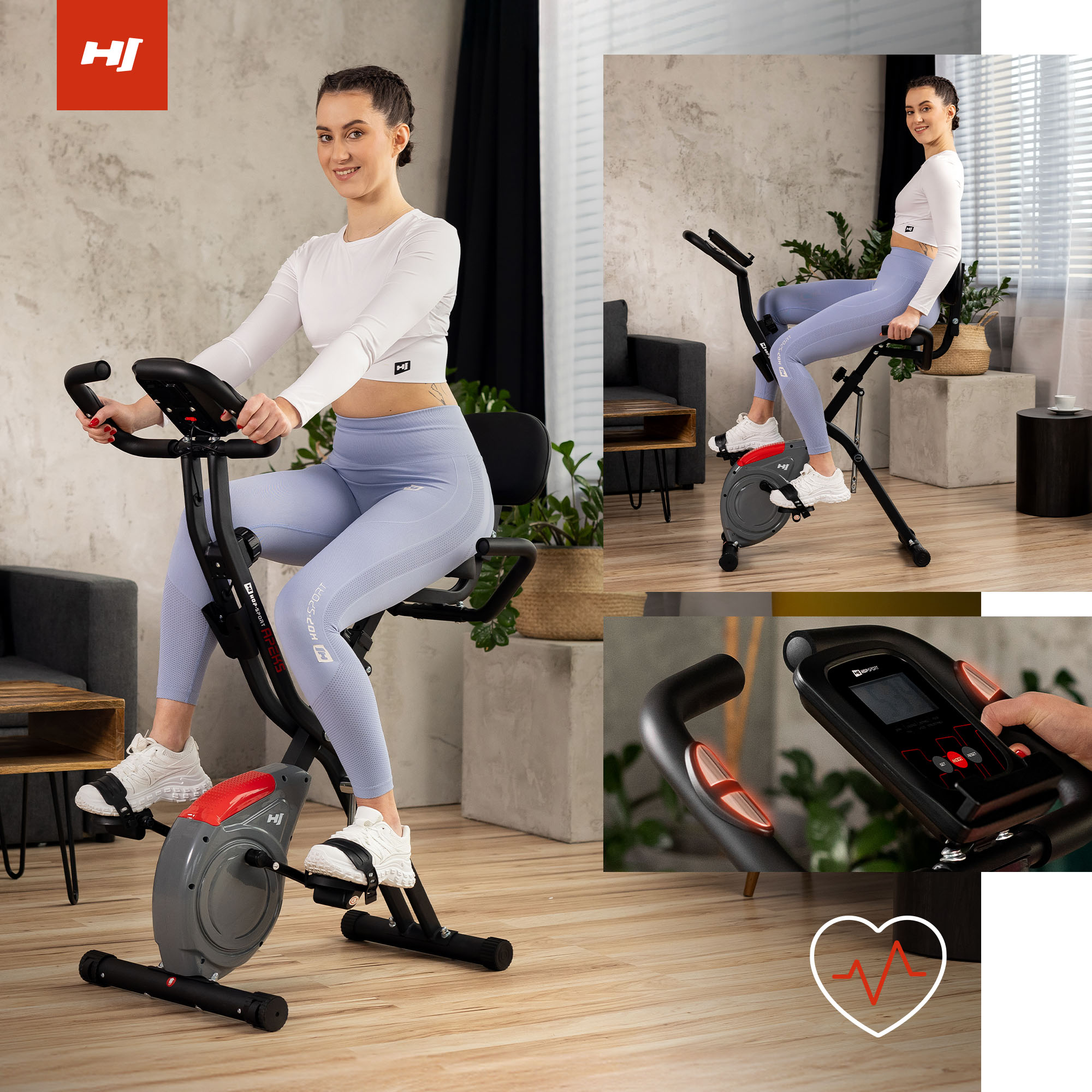 Cerchi una cyclette che ti permetta di svolgere un intenso esercizio cardio, ma hai uno spazio di allenamento limitato? Scegli la cyclette pieghevole HS-3030X Apeks del marchio Hop-Sport, la cui altezza del sedile e angolo di apertura puoi comodamente adattare alle tue preferenze! Il modello di cyclette x-bike ti offre la possibilità di cambiare la posizione del corpo - puoi allenarti come su una cyclette tradizionale o trasformarla in un equivalente di una cyclette reclinata. La regolazione della resistenza su 10 livelli ti consente di adattare l'intensità dell'esercizio al tuo livello di avanzamento, mentre la struttura stabile garantisce sicurezza e una capacità di carico fino a 120 kg.
