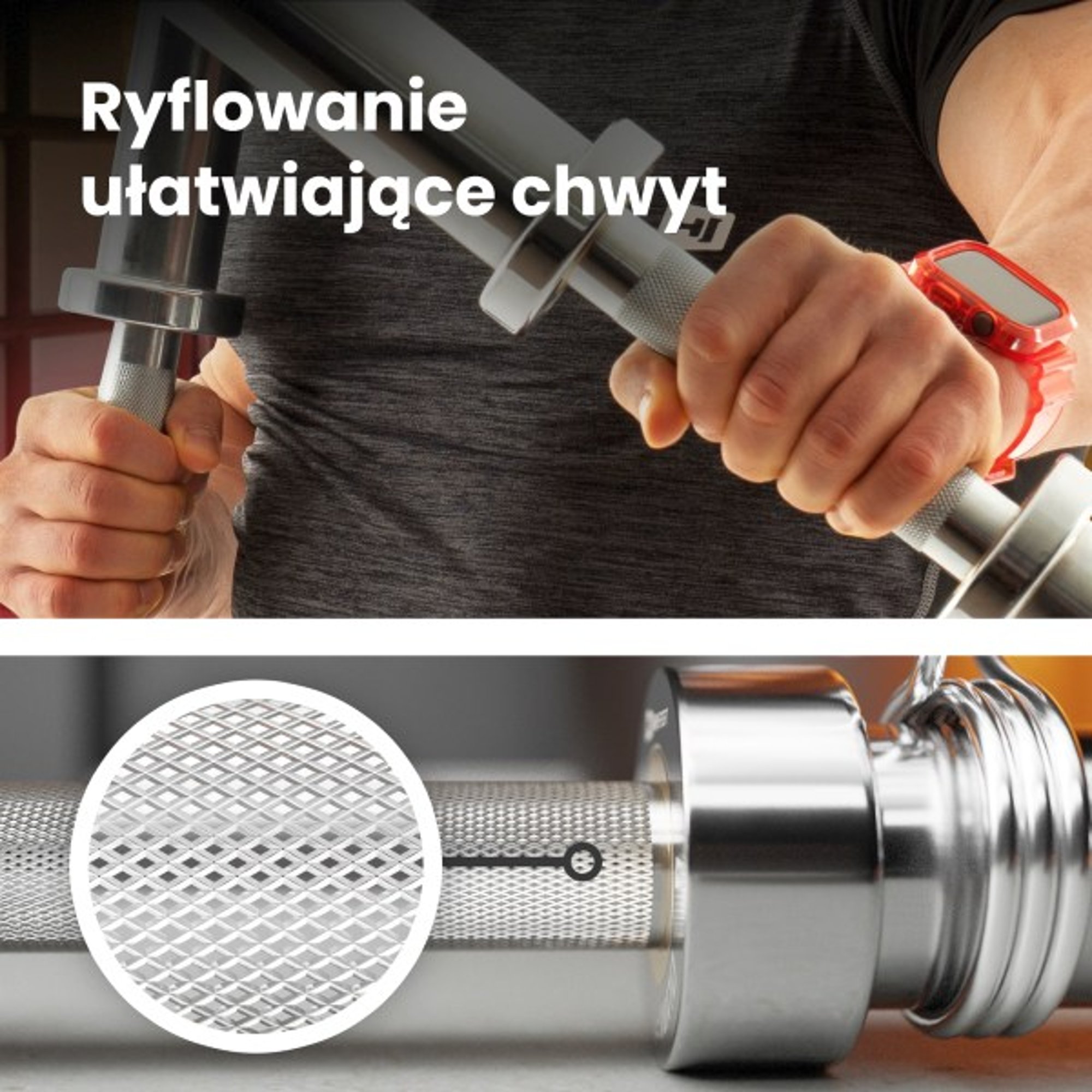 Con il bilanciere olimpico puoi sollevare pesi in sicurezza grazie alla parte di presa zigrinata, che ha proprietà antiscivolo e garantisce una presa sicura anche in caso di mani scivolose.