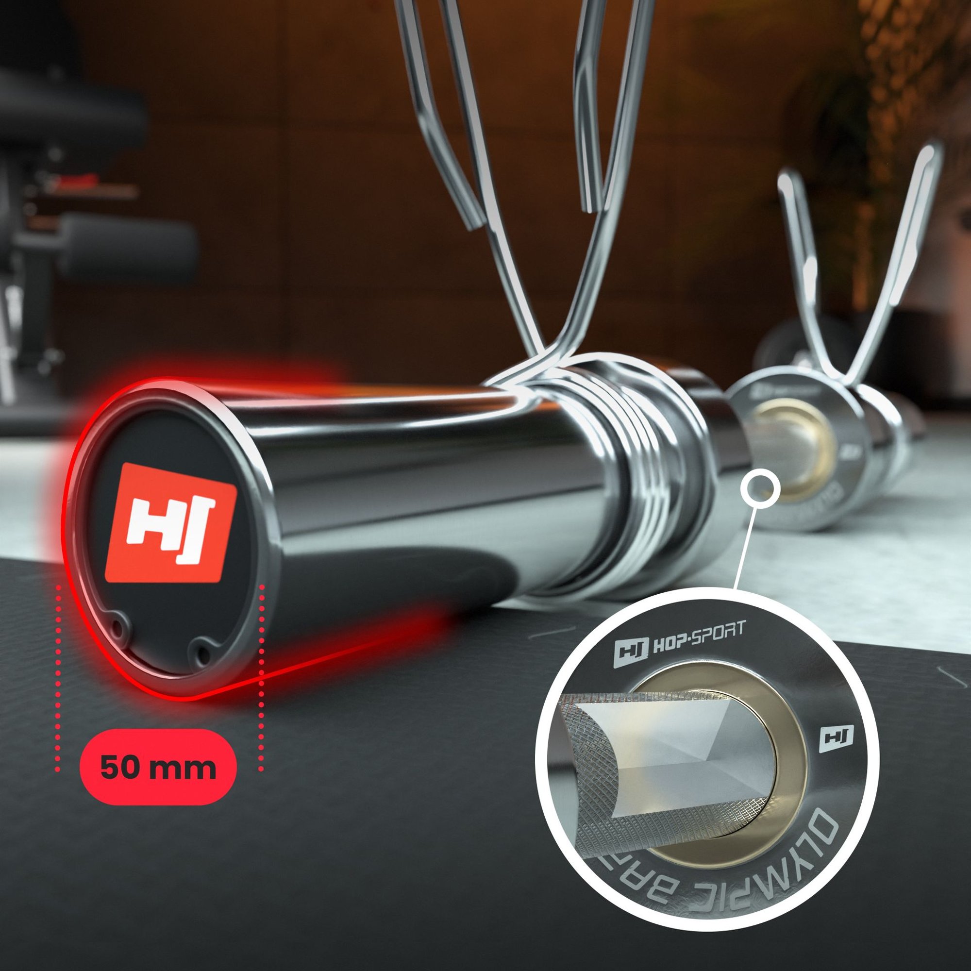 La struttura del bilanciere olimpico è costituita da una barra in acciaio cromato ottenuta attraverso un processo di tempra, che elimina il rischio di deformazione o piegatura della barra nel tempo. La barra non ha giunzioni, il che la rende molto più resistente, e la sua capacità di carico è di ben 320 kg. La parte di presa del bilanciere ha un diametro di 30 mm, il che la rende sicura e comoda da tenere in mano.