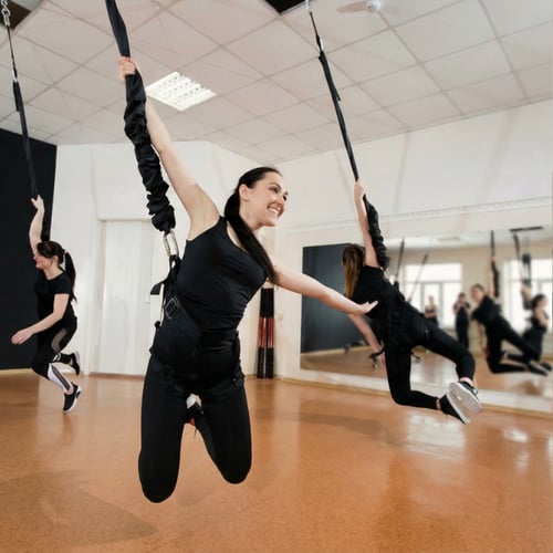 Il bungee fitness è una disciplina che unisce lavoro cardio, esercizi funzionali e movimenti in sospensione. Indossiamo un’imbracatura collegata a un elastico fissato al soffitto e ci muoviamo sfruttando la tensione controllata dello sling bungee. Il principio è semplice - l’elastico sostiene parte del peso corporeo ma, allo stesso tempo, oppone resistenza e ci richiede controllo costante in ogni fase del gesto.
