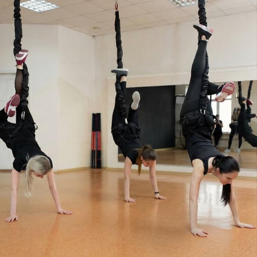 Durante la pratica rimaniamo sempre ancorati e guidati, sia dall’attrezzatura sia dalle indicazioni del trainer, che suggerisce correzioni in tempo reale. Questo rende la disciplina sicura, a patto che l’installazione al soffitto sia certificata, l’imbracatura regolata correttamente e che rispettiamo i nostri tempi di apprendimento senza forzare le tappe intermedie.