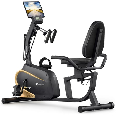 Cyclette reclinata HS-045L Volt con regolazione della resistenza a 10 livelli, espansori e sedile ergonomico per un allenamento confortevole a casa. Cyclette orizzontale magnetico con sella regolabile, cyclette da casa, silenziosa per appartament.