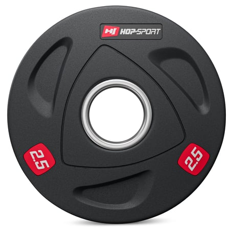 Pesi olimpionici 2,5 kg realizzati in fusione di ghisa piena, rivestiti con gomma antiscivolo , che ammortizza efficacemente i pesi in caso di caduta e inoltre attutisce il rumore generato. L'anello in acciaio con diametro di 51 mm garantisce un'elevata resistenza dei dischi olimpionici durante il loro frequente cambio sul bilanciere. I pesi olimpionici da 2,5 kg hanno incisioni con informazioni sul peso, che facilitano l'identificazione rapida e il cambio di carico, oltre a scanalature speciali, che fungono da maniglie , aumentando il comfort d'uso.