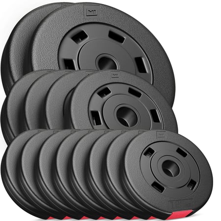 Per un maggiore comfort di allenamento i pesi compositi sono costruiti in modo tale che uno dei bordi dei dischi sia smussato. Il tappo blocca efficacemente i pesi in posizione verticale, in modo che il peso sia protetto da rotolamenti accidentali , il che influisce non solo sul comfort, ma anche sulla sicurezza dell'utente.