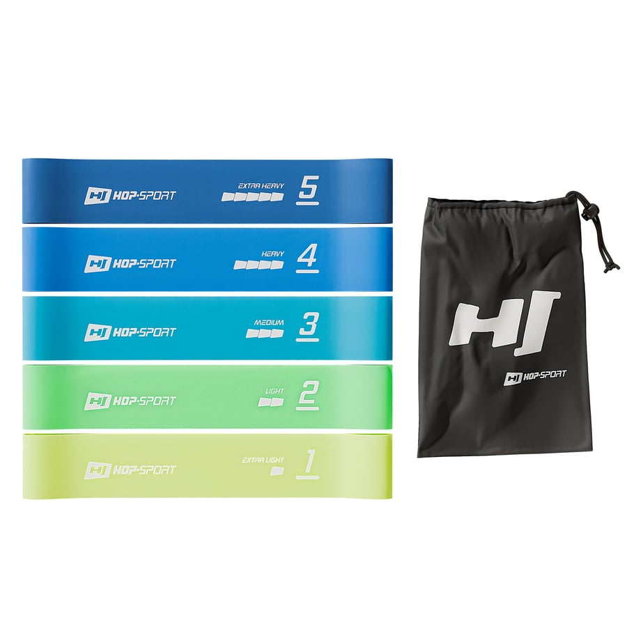 Set di fasce di resistenza 600x50mm HS-L650RLB del marchio Hop-Sport sono cinque fasce di resistenza con diversi livelli di resistenza, che si dimostreranno efficaci durante gli esercizi domestici. Il loro utilizzo universale ti permette di utilizzarle in diversi tipi di allenamento – dal potenziamento muscolare, al fitness, fino agli esercizi riabilitativi. Gli allenamenti con le fasce ti aiuteranno a rafforzare muscoli e articolazioni in tutto il corpo. Sono consigliate sia per principianti che per avanzati. Il set HS-L650RLB include cinque fasce in lattice, che offrono diversi livelli di resistenza in un ampio intervallo da 2,5 a 18 kg. Grazie alle dimensioni ridotte, le fasce sono molto facili da trasportare e conservare.