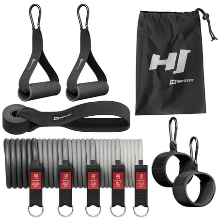Il set di espansori del marchio Hop-Sport è composto da cinque bande con resistenza variabile da 4,6 kg a 22,8 kg. Grazie a ciò, puoi adattare l'intensità degli esercizi alle tue esigenze e aumentare gradualmente il livello di difficoltà. La possibilità di un sistema di chiusura regolabile consente l'uso di tutte le bande contemporaneamente, permettendoti di ottenere un carico massimo fino a 68,2 kg! Il set include anche 2 maniglie, 2 cinghie per le caviglie, un'ancora per la porta e una pratica borsa per il trasporto.