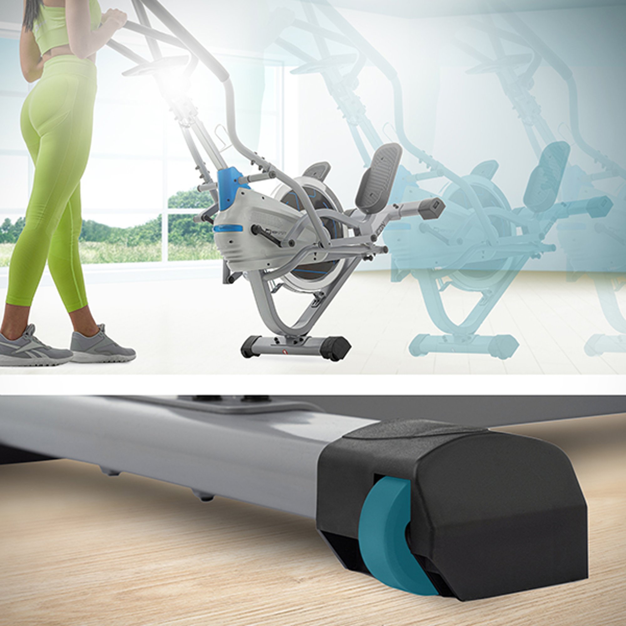 La macchina è stata progettata in modo da adattarsi perfettamente alle condizioni domestiche. Grazie alle dimensioni compatte, trovare spazio per essa non rappresenta alcun problema. Climber è dotato anche di ruote di trasporto, che permettono di spostarlo facilmente in un altro luogo dopo l'attività. Inoltre, grazie a queste, il pavimento è protetto dai graffi. È quindi possibile eseguire l'allenamento in qualsiasi stanza.