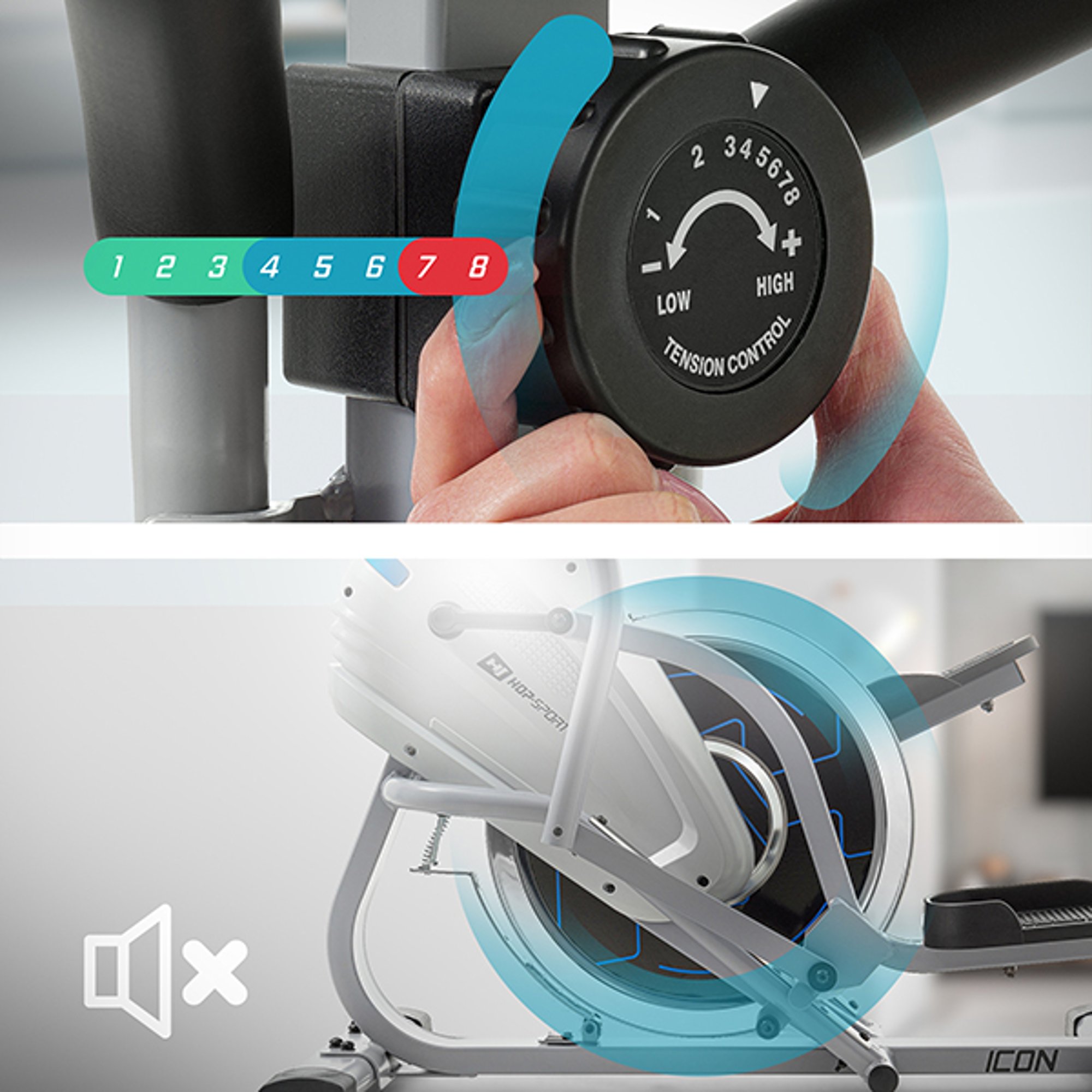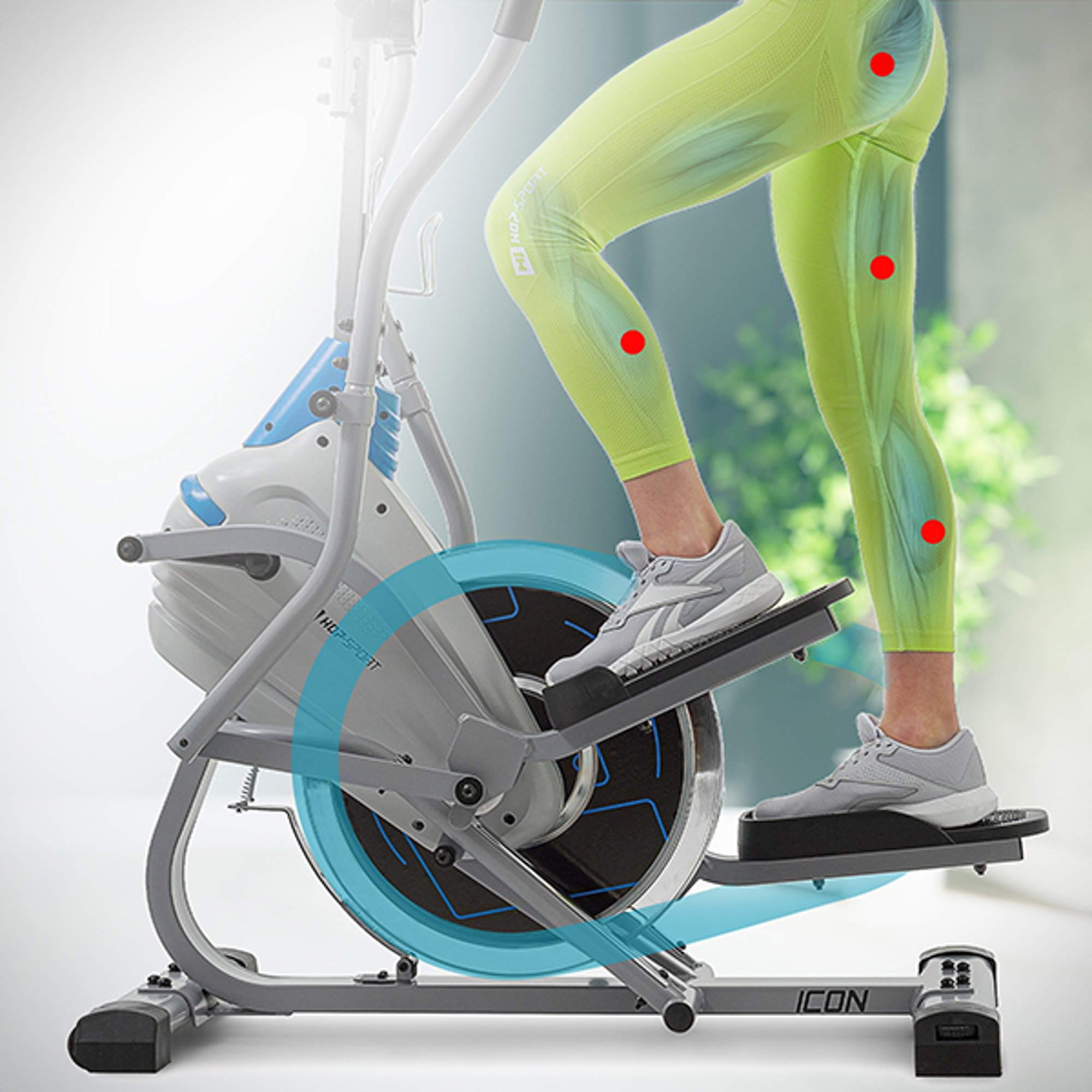 L'ellittica Climber Icon Hop-Sport è una combinazione di stepper ed ellittica. Simula il movimento su scale o arrampicata. Allenamento cardio domestico. Ellittica da casa- la macchina silenziosa da allenamento cardio e fitness con resistenza regolabile.
