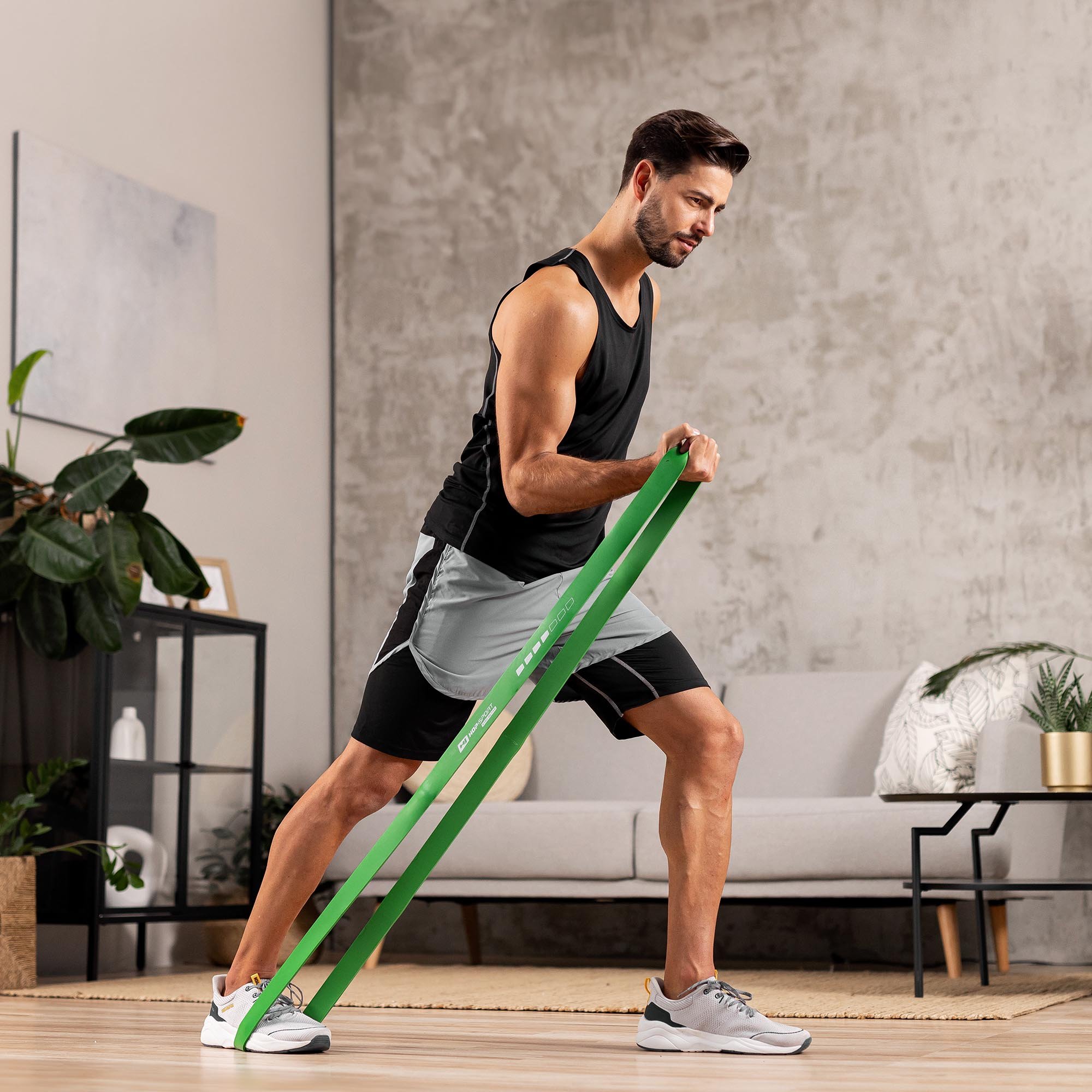 La fascia di resistenza 23 - 57 kg (verde) è uno strumento semplice, grazie al quale aumenterai la forza muscolare e migliorerai la flessibilità delle articolazioni. Il suo più grande vantaggio è la versatilità: si adatta perfettamente a diversi tipi di allenamento, dal potenziamento muscolare, al fitness, fino agli esercizi di riabilitazione. La fascia verde HS-L044RR Hop-Sport genera una resistenza che varia da 23 a 57 kg. È consigliata sia per i principianti che per le persone avanzate che vogliono portare i loro allenamenti a un livello superiore. Le dimensioni ridotte la rendono molto facile da trasportare e conservare.