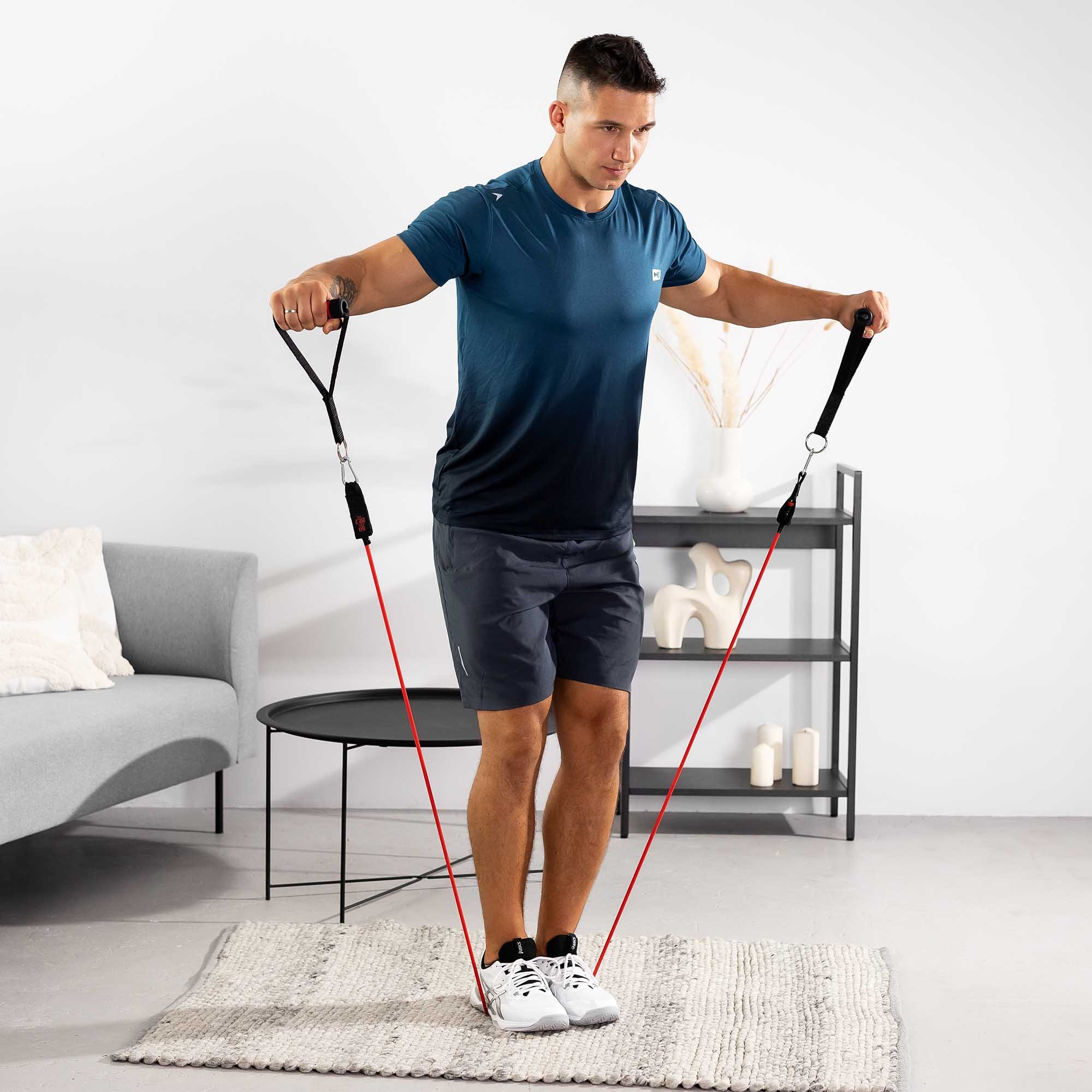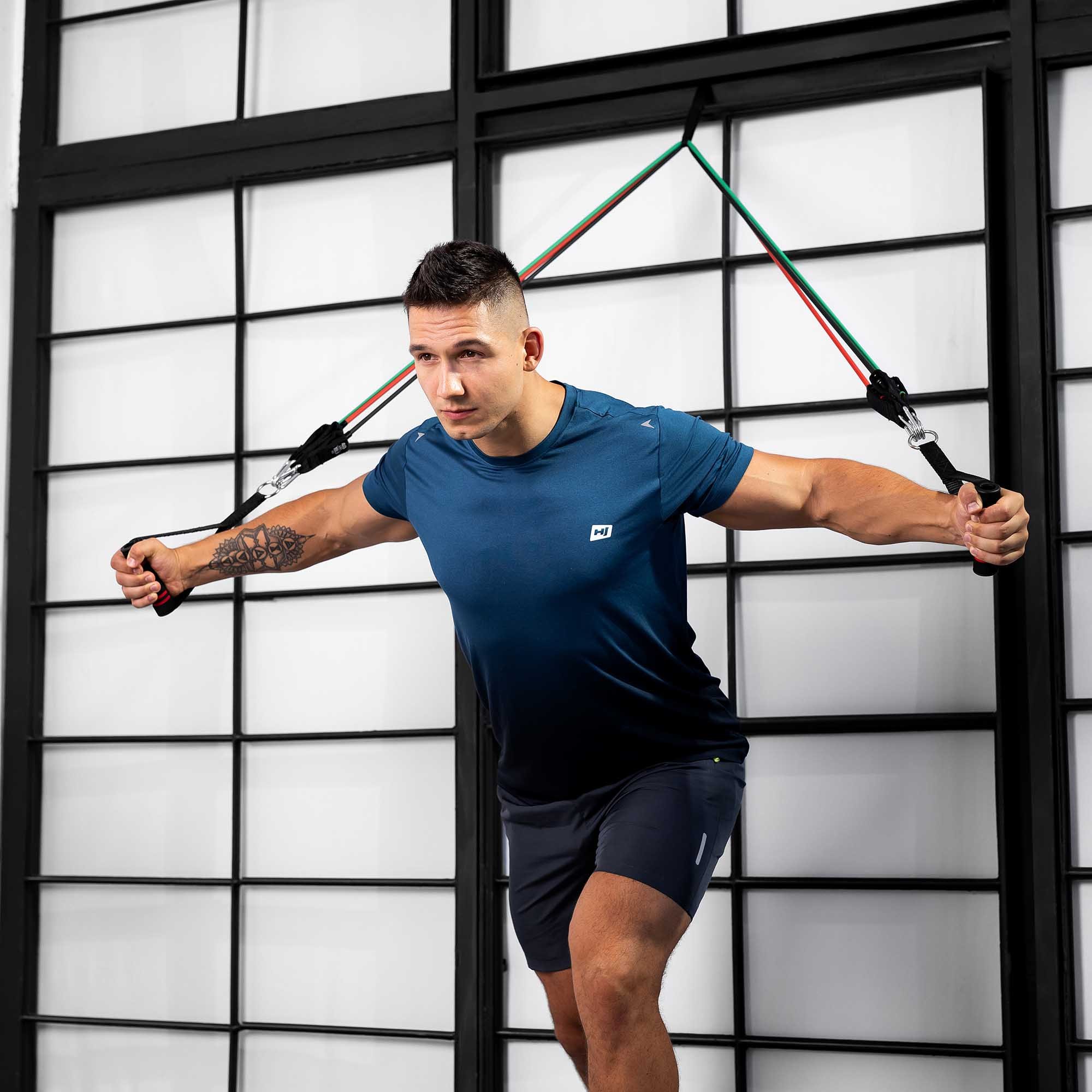 Il set di espansori HS-R050RT ti garantirà un allenamento completo del corpo. Oltre a essere uno strumento efficace per modellare braccia, torace e schiena, grazie alle cinghie per le caviglie incluse nel set, consente anche di eseguire un allenamento delle gambe. Questo tipo di allenamento ti aiuterà a rafforzare in particolare le articolazioni delle caviglie e delle ginocchia.