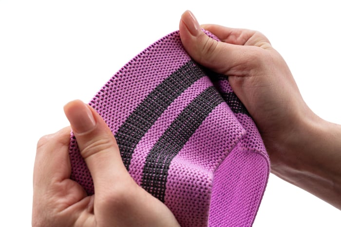 Le fasce sono realizzate in un materiale piacevole al tatto. È allo stesso tempo resistente e resistente allo strappo. All'interno delle fasce ci sono inserti in gomma antiscivolo che impediscono alla fascia di arrotolarsi e scivolare dal corpo, garantendo un allenamento confortevole.