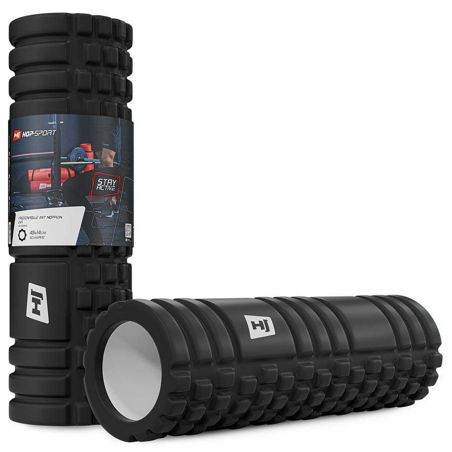 Rullo per massaggio con protuberanze 45cm nero. Aiuta a rilassare e rigenerare i muscoli, realizzato in schiuma EVA di alta qualità e impermeabile