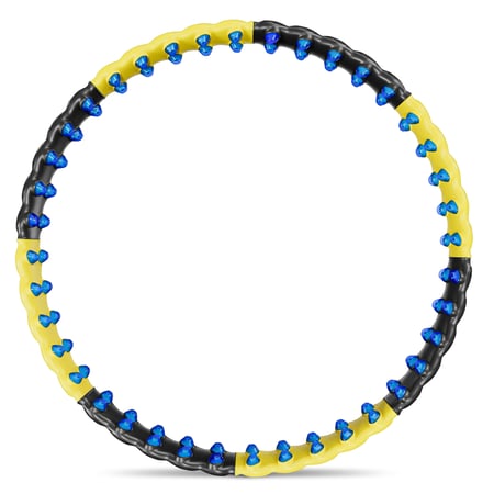 L'hula-hoop, nei colori giallo e nero, è dotato di 80 sfere magnetiche , disposte in due file su tutta la superficie del cerchio . Il massaggio che eseguirai con i nodi non solo aumenterà l'efficacia degli esercizi, contribuendo a rompere il tessuto adiposo e a bruciare calorie più velocemente, ma migliorerà anche la circolazione sanguigna e rafforzerà i muscoli. La collocazione dei magneti nei nodi influenzerà positivamente l'equilibrio elettromagnetico nel tuo corpo, contribuendo indirettamente anche a una più rapida rigenerazione dei tessuti . L'hula-hoop con nodi garantisce allenamenti più intensi rispetto ai modelli classici, permettendoti di notare i primi effetti degli esercizi molto più rapidamente.