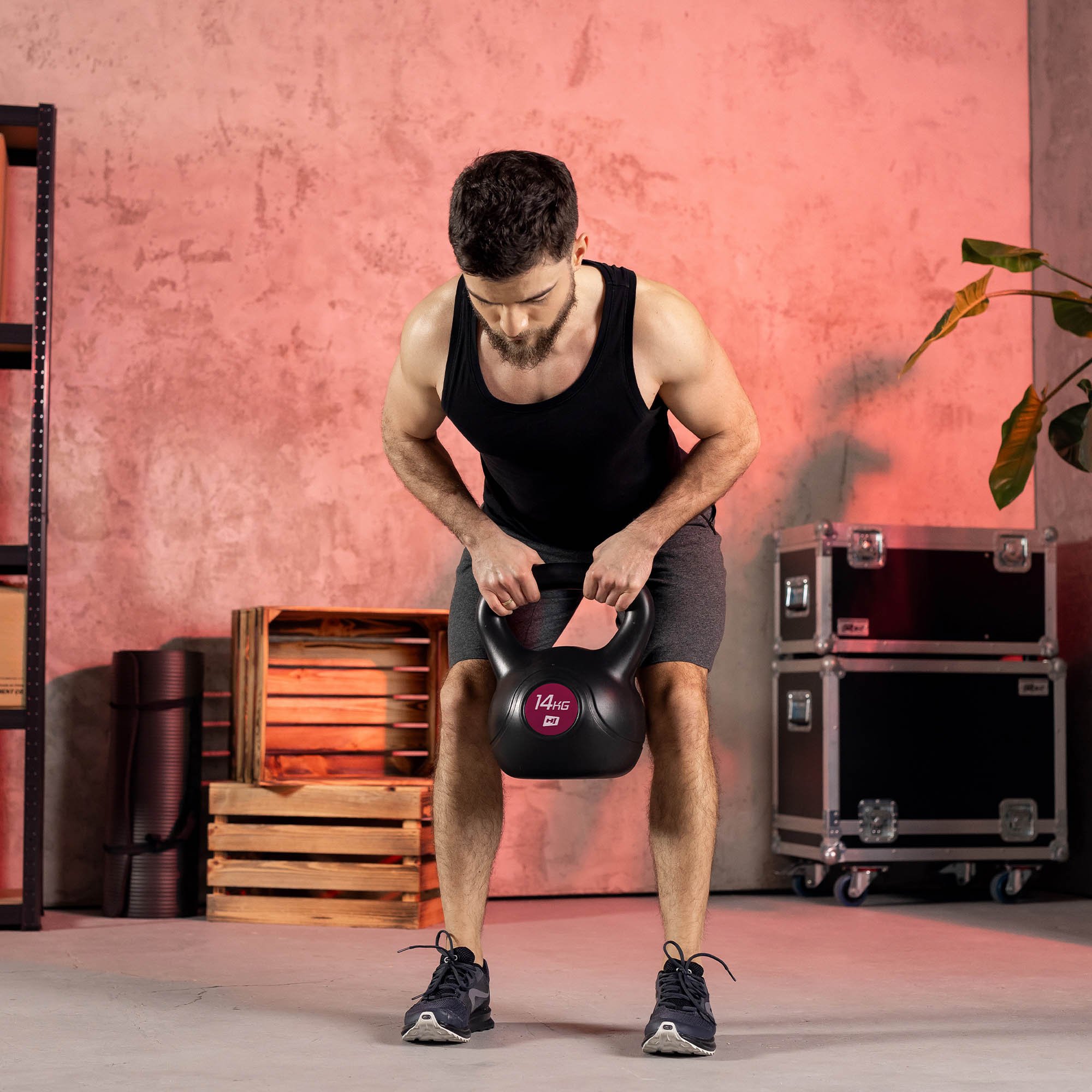 Kettlebell in vinile, con base piatta, antiscivolo, impugnatura ergonomica. Per palestra e per fitness. Peso tipo kettlebell in vinile 14kg, gli allenamenti con kettlebells ti aiuteranno a rafforzare efficacemente i muscoli, scolpire la silhouette e perdere i chili in eccesso.