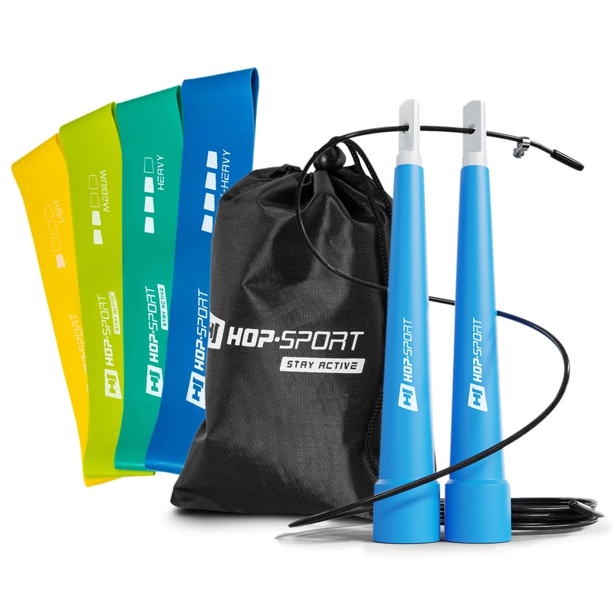 Vuoi migliorare la tua forma fisica e lavorare sulla tua silhouette? Con il set del marchio Hop-Sport sarà efficace e piacevole. Il set è composto da una corda per saltare e un set di bande di resistenza, oltre a una sacca per riporli. Gli esercizi con questo attrezzo possono essere facilmente adattati al tuo livello di abilità, puoi eseguire allenamenti di diversa intensità. Grazie alla sacca, puoi facilmente imballare gli accessori e portarli ovunque ti portino le gambe.