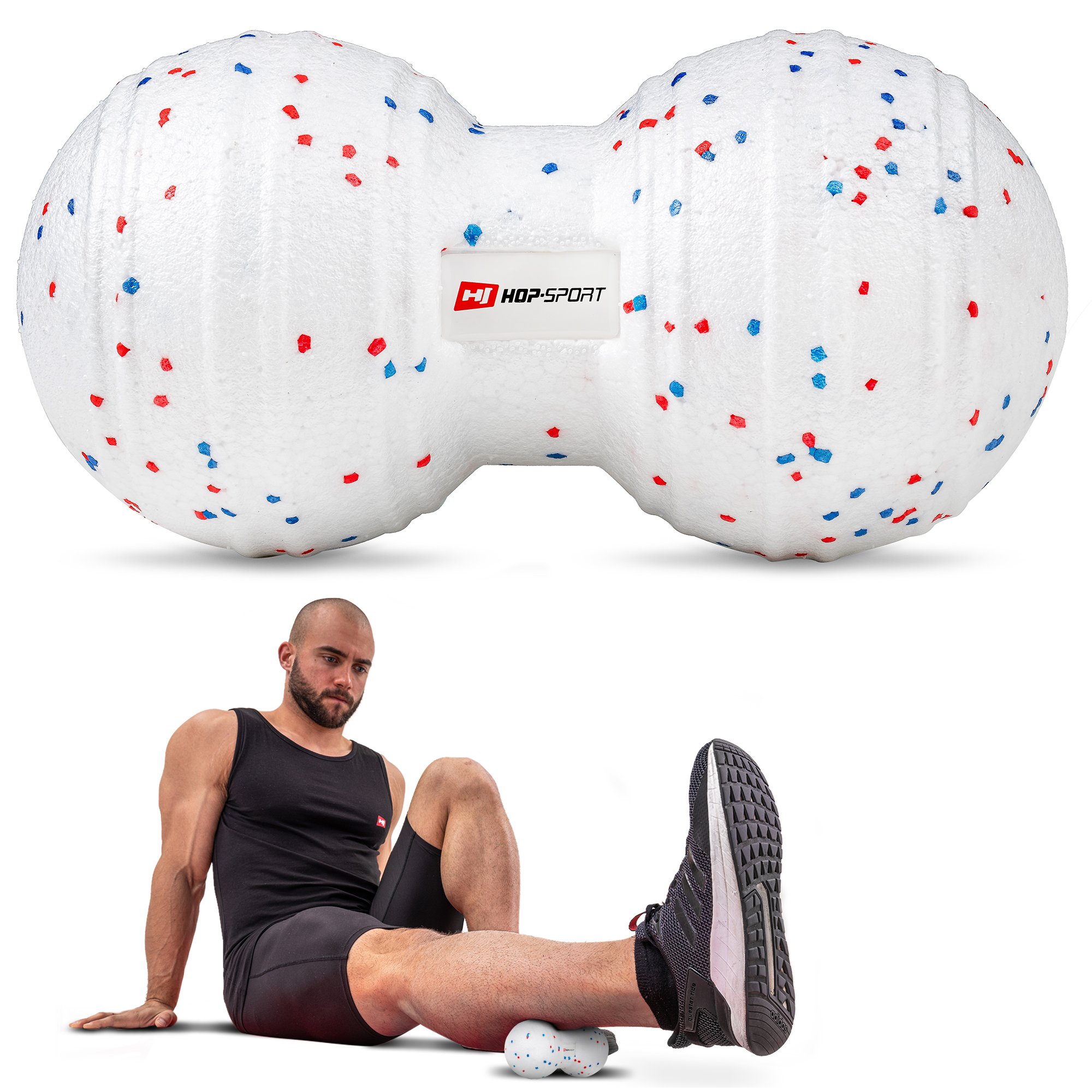 La doppia palla EPP da 120 mm è un massaggiatore universale e semplice per chiunque senta tensione e dolore muscolare o semplicemente voglia rilassarsi dopo una giornata stressante al lavoro. Lo strumento è composto da due palle collegate tra loro ed è ideale per l'automassaggio della colonna vertebrale. Il restringimento al centro si adatta alla linea della colonna vertebrale, mentre le protuberanze su entrambi i lati massaggiano i muscoli lungo di essa. Lo strumento consente di raggiungere le aree più difficili della schiena.