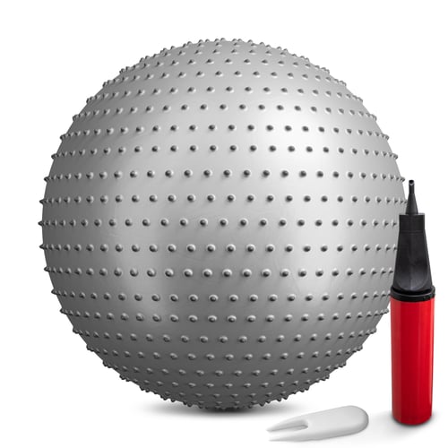 La palla ginnica con rilievi del marchio Hop-Sport, può essere utilizzata sia negli esercizi di stabilizzazione, nello yoga, che negli esercizi correttivi. Realizzata in resistente materiale PVC la palla fitness, con una capacità massima di carico di 100 kg, è resistente all'usura e la sua superficie antiscivolo previene lo scivolamento della palla durante gli esercizi. I rilievi di cui è dotata la palla ginnica stimolano la circolazione sanguigna, svolgendo al contempo la funzione di massaggiatore.