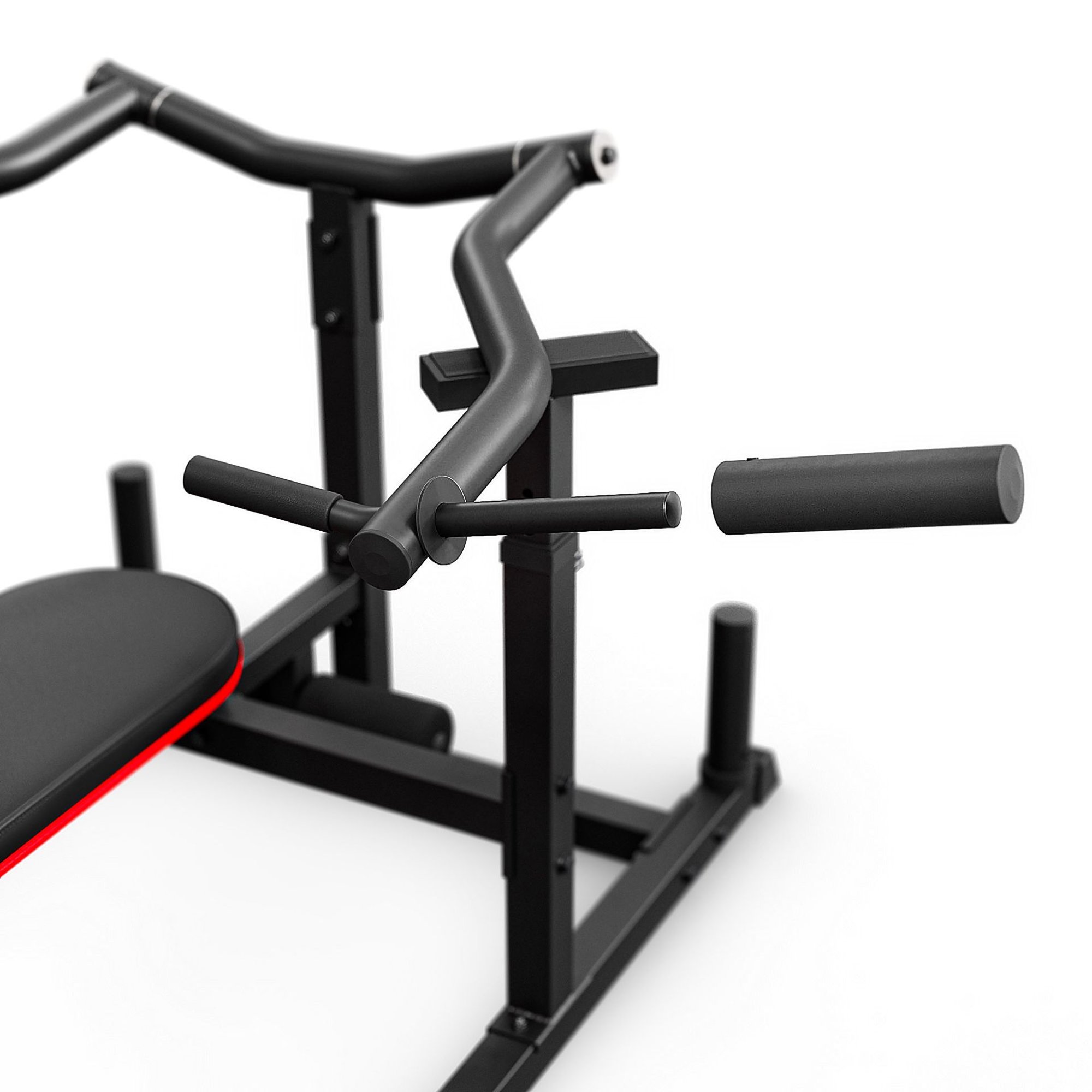 L’attrezzo consente un allenamento completo del corpo – panca piana, inclinata, esercizi per le spalle e addominali con blocco gambe.
