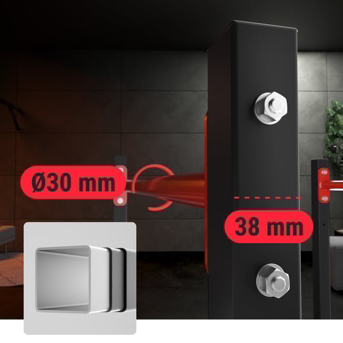 Le parallele sono realizzate con profili in acciaio solidi 38x38 mm e tubi da 30 mm. Tutti gli elementi sono rivestiti con vernice a polvere che li protegge dai danni e dalla corrosione. Grazie a ciò, la struttura HS-1011K è molto resistente e le parallele possono essere utilizzate per lungo tempo.