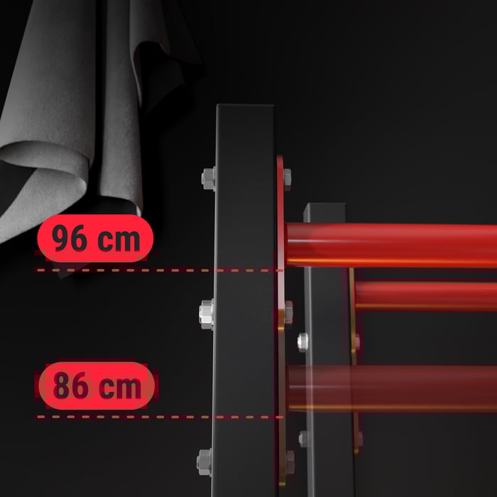 Le parallele per allenamento HS-1011K hanno una regolazione dell'altezza a 2 livelli , grazie alla quale possono essere impostate in una posizione adattata alle predisposizioni individuali della persona che si allena, come l'altezza o il tipo di attività svolta.
