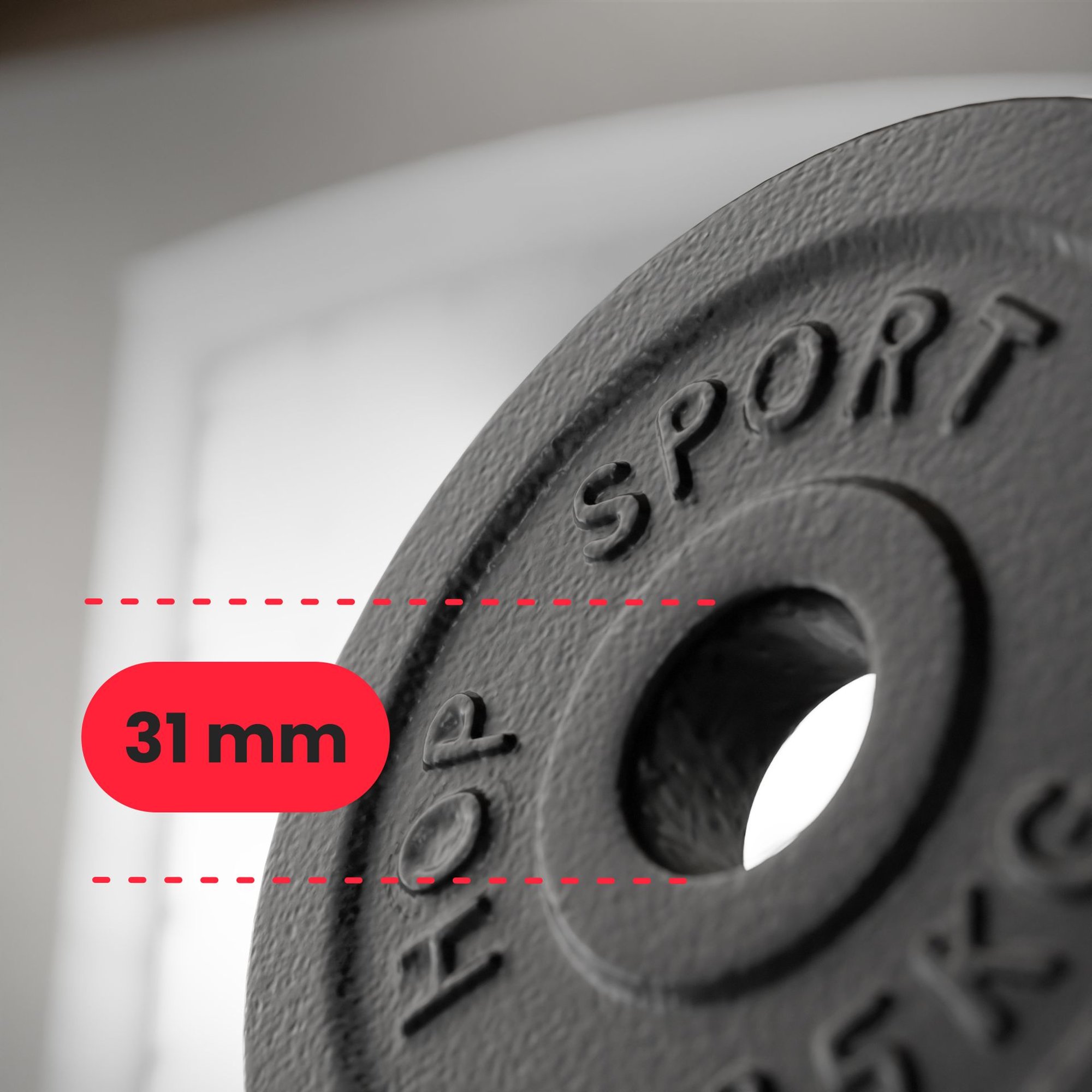 I dischi in ghisa hanno un foro universale con un diametro di 31 mm . Si adatta alla maggior parte dei bilancieri standard con un diametro dell'asta di 30 mm.