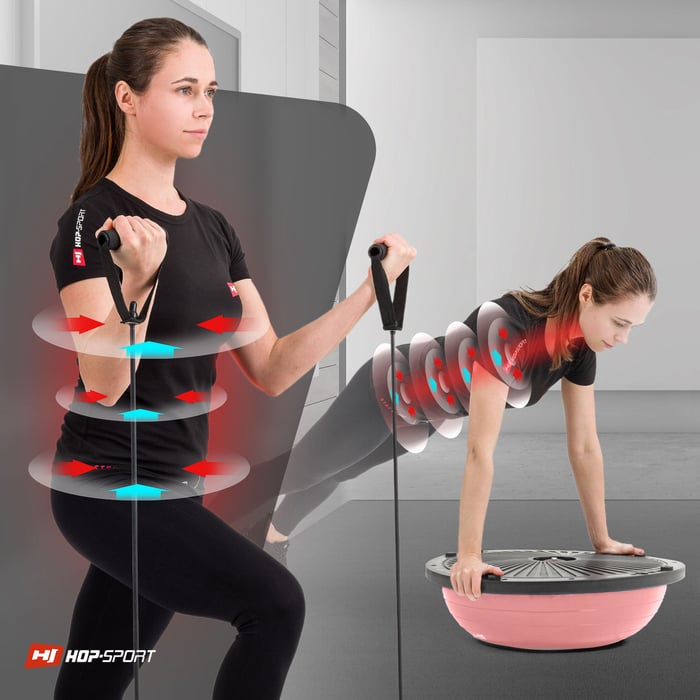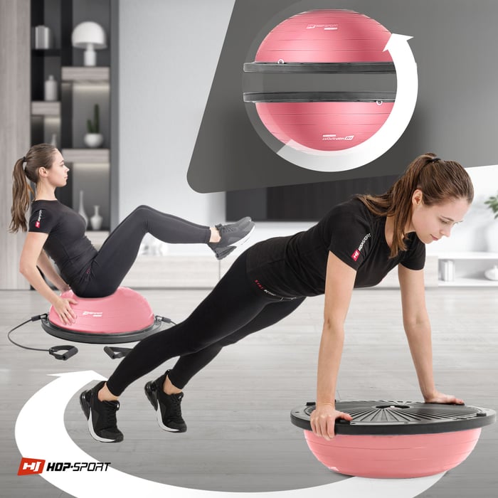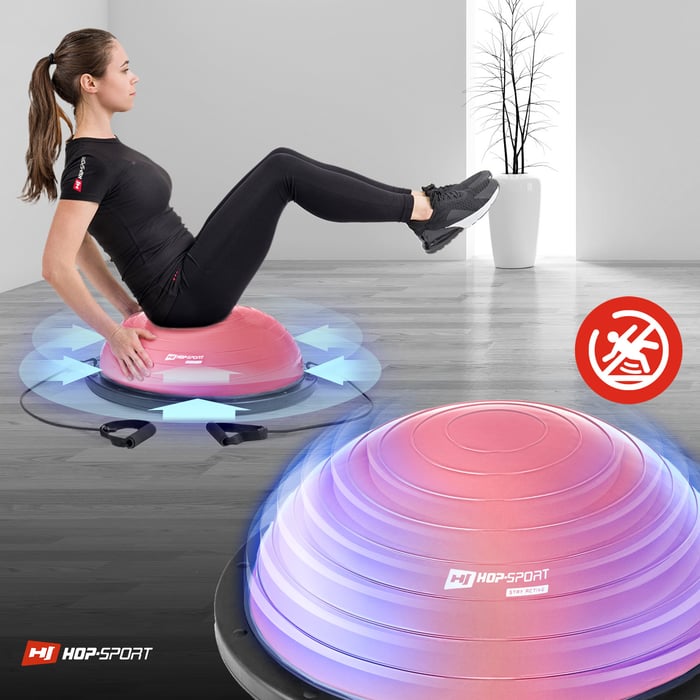 A causa della sua costruzione, la piattaforma di bilanciamento è anche chiamata “mezza palla” – a causa della somiglianza con una palla da fitness tagliata a metà, posizionata su una base stabile. Durante l'allenamento puoi posizionare la piattaforma in due modi : con la cupola semicircolare verso l'alto o con la base piatta verso l'alto. Entrambe le posizioni consentono di eseguire un ampio spettro di esercizi in diverse posizioni – in ginocchio, seduti, sdraiati, in piedi. Sulla piattaforma si può anche correre e fare salti , il che rende questo dispositivo popolare tra gli appassionati di allenamento aerobico. La piattaforma è sicura – il rivestimento superiore progettato appositamente garantisce stabilità durante l'esecuzione degli esercizi, mentre la base piatta antiscivolo con piedini previene lo spostamento incontrollato.