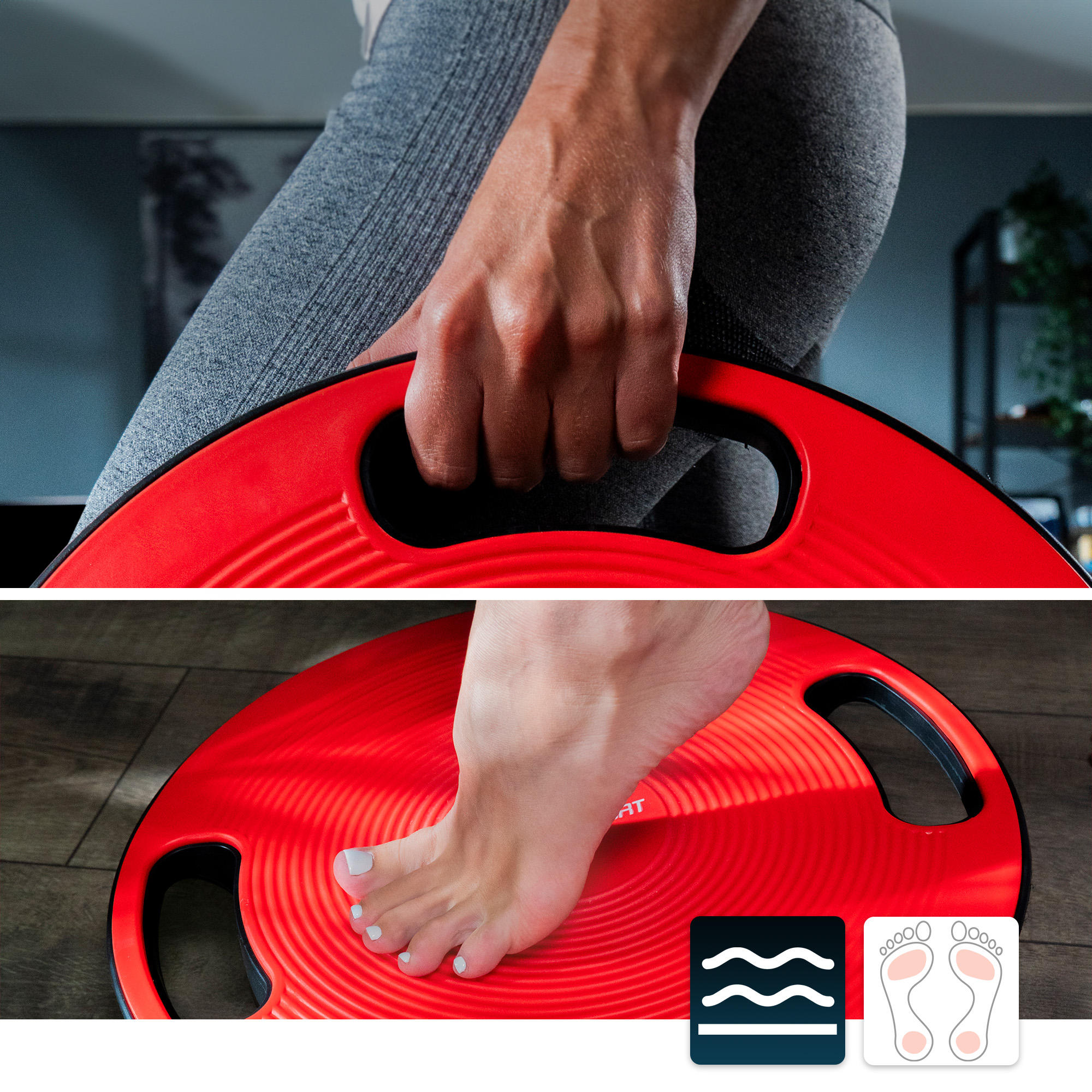 La piattaforma di bilanciamento rossa del marchio Hop-Sport con un diametro di 40 cm , è stata progettata in modo da consentirti di eseguire vari esercizi, sia in posizione verticale, stando sul disco, sia in posizione orizzontale, appoggiandoti sulle mani. Realizzata in materiale sintetico di alta qualità - inodore, non assorbente e resistente alle crepe - durerà a lungo, e l'applicazione di un ulteriore rivestimento antiscivolo , ti garantirà sicurezza durante l'allenamento.