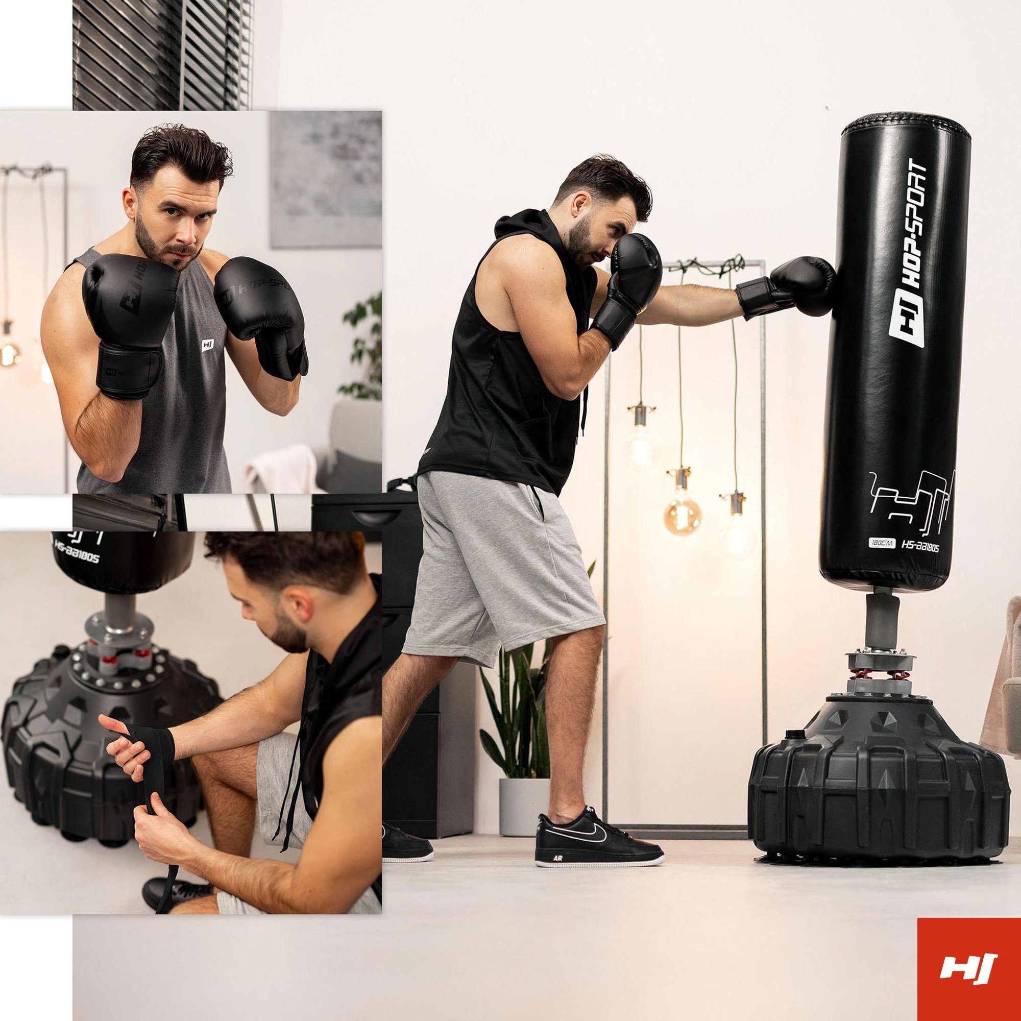 Sacco da allenamento autoportante del marchio Hop-Sport è un'ottima alternativa al tradizionale sacco da boxe, che non richiede montaggio al soffitto. È uno strumento che può essere utilizzato non solo per perfezionare le tecniche di arti marziali, ma anche come forma di allenamento di potenziamento, mirato a costruire forza e scolpire i muscoli . Il sacco da allenamento con un'altezza di 180 cm e un diametro di 32 cm, è caratterizzato da un sistema anti-shock innovativo , basato su 4 molle con ammortizzatori, che elimina le vibrazioni e le oscillazioni che si verificano durante l'allenamento. Base stabile , dotata di 25 ventose , previene lo spostamento del sacco e garantisce un allenamento sicuro nel comfort della propria casa .