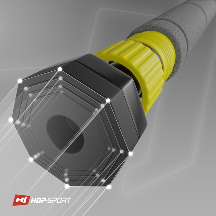 La barra HS-M050DP ha quasi tutta la lunghezza rivestita con una schiuma piacevole al tatto, che ti garantirà una presa migliore durante gli esercizi. Il rivestimento è composto da tre strati resistenti, il che lo rende più resistente a eventuali danni e strappi rispetto alle normali schiume monostrato.
