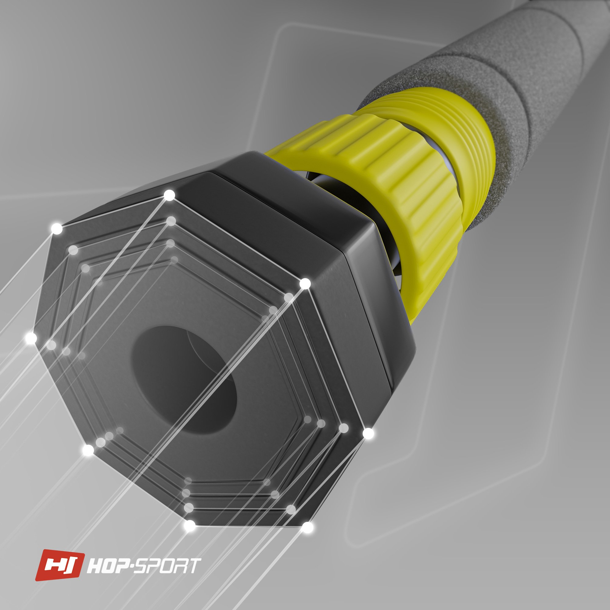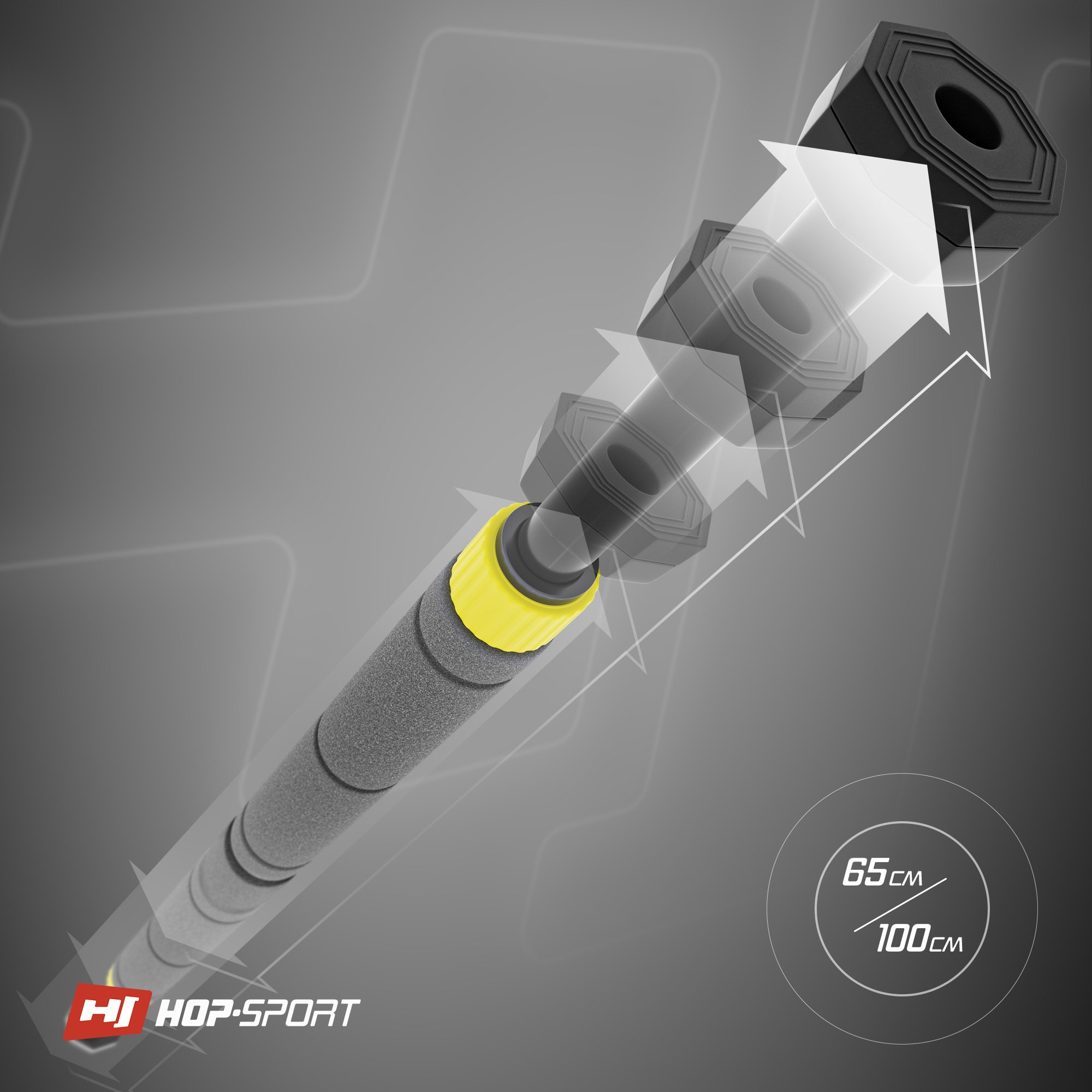 Cerchi un attrezzo multifunzionale per allenamenti domestici che non occupi molto spazio? Scegli la barra telescopica HS-M050DP del marchio Hop-Sport. L'allenamento con la barra permette di migliorare la forza e la muscolatura di bicipiti, tricipiti, spalle e muscoli della schiena, sviluppa i muscoli del petto e rafforza i muscoli addominali. I vantaggi della barra sono il sistema di pressione a otto punti e il rivestimento resistente a tre strati
