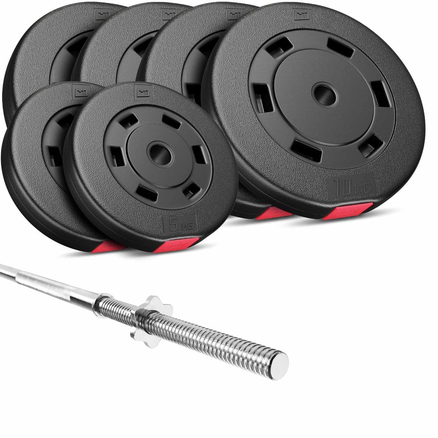 Set Premium 59 kg con bilanciere dritto del marchio Hop-Sport è un'attrezzatura di alta qualità per uso domestico. Il suo utilizzo nell'allenamento consente un allenamento culturistico generale. Il Set Premium contiene pesi di buona qualità rivestiti in materiale plastico e bilancieri professionali.