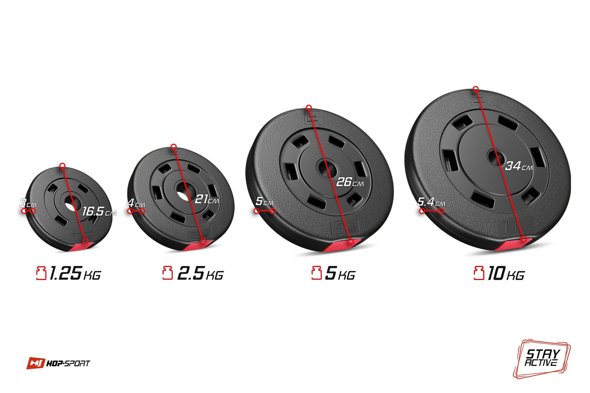 Sollevare pesi porta i risultati attesi, quando si aumenta gradualmente il carico. Il set di pesi Premium 75 kg del marchio Hop-Sport è un elemento ideale per l'attrezzatura della palestra domestica, che offre la possibilità di un allenamento di forza generale. Il set Premium include piastre rivestite in plastica e bilancieri professionali, dritti e curvi. Gli allenamenti con il set Premium sono comodi e sicuri.
