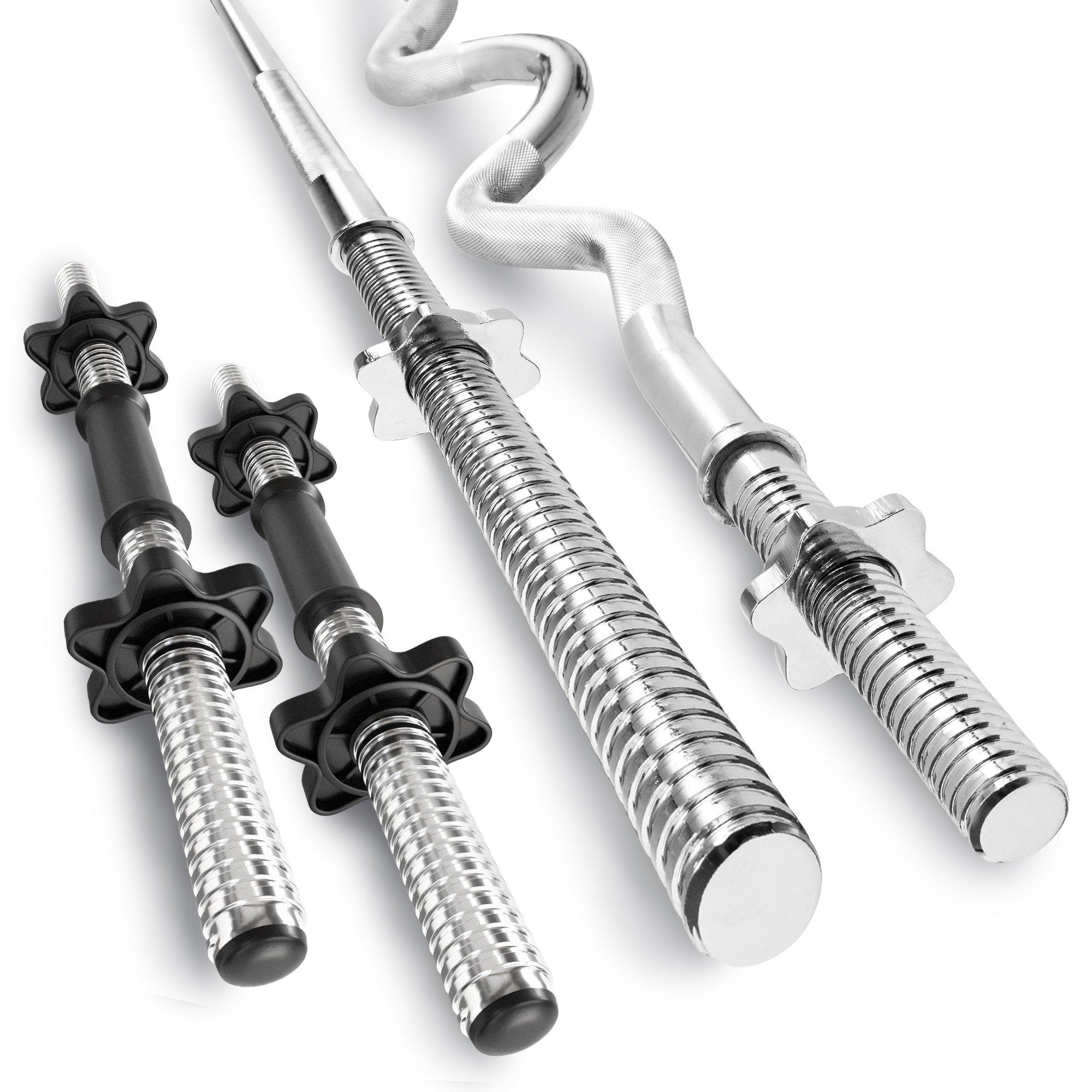 Le dimensioni dell'attrezzatura sono state perfezionate in modo tale da essere massimamente adattate agli esercizi quotidiani in palestra domestica. Il bilanciere leggermente curvo 120 cm è ideale per il bilanciere , e la sua costruzione consente di allenare principalmente le parti muscolari superiori. Allenandosi con il bilanciere leggermente curvo si coinvolgono particolarmente i bicipiti, tricipiti e le braccia, senza sovraccaricare eccessivamente i polsi.