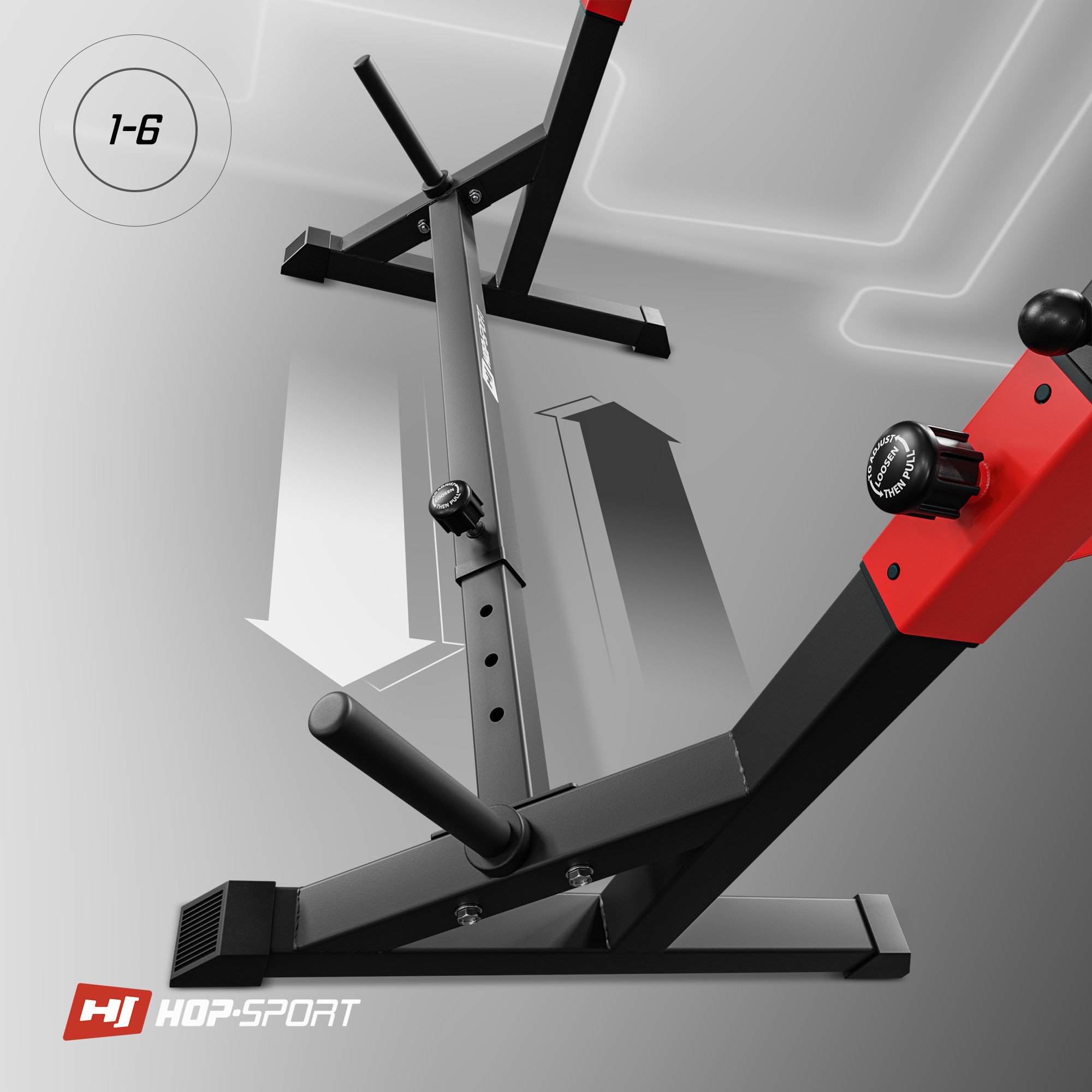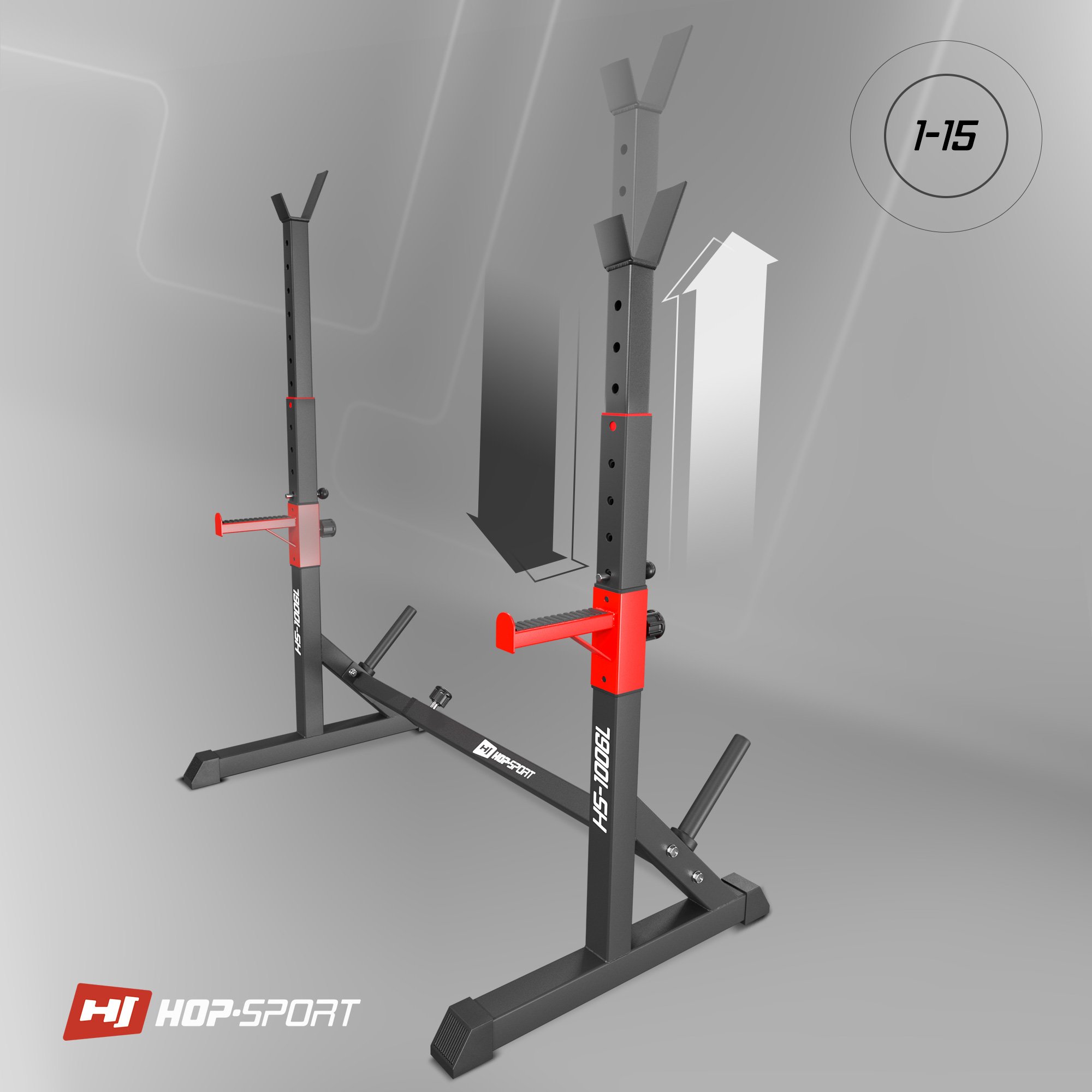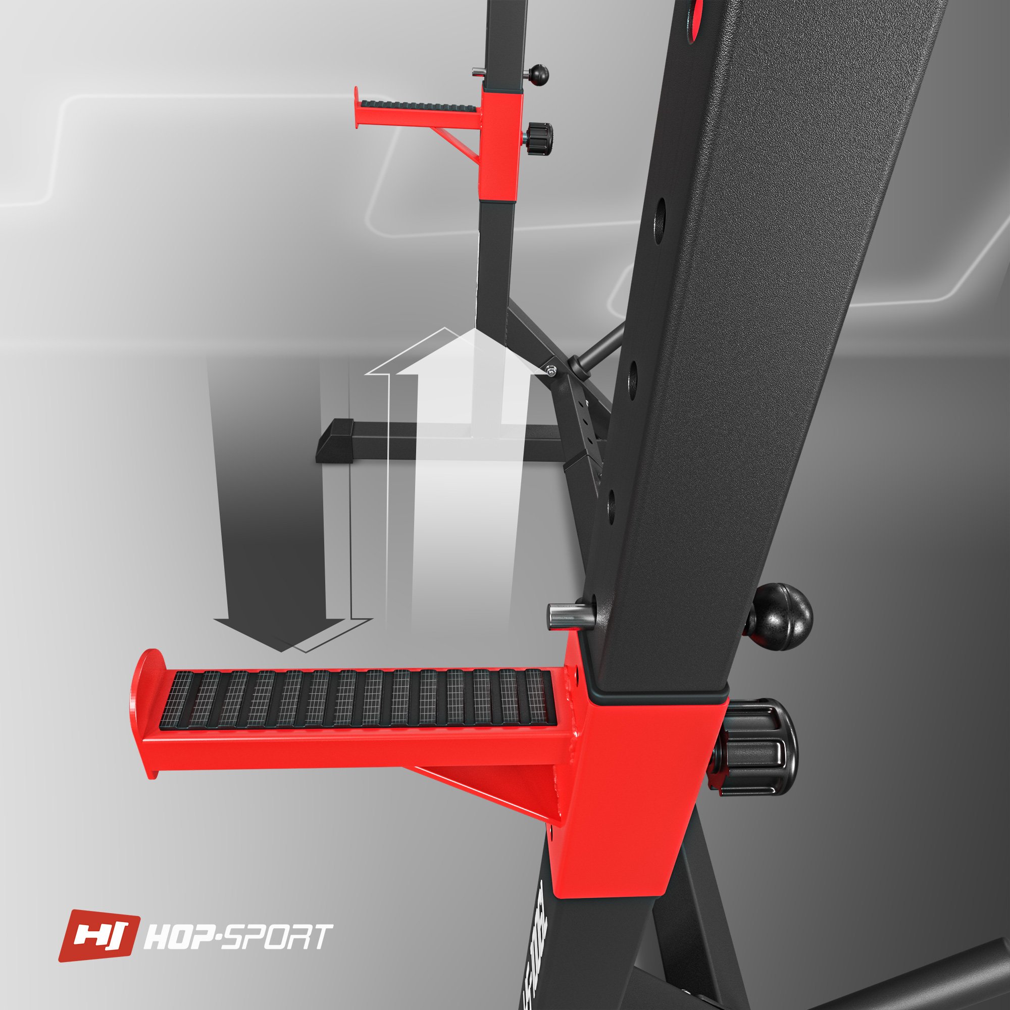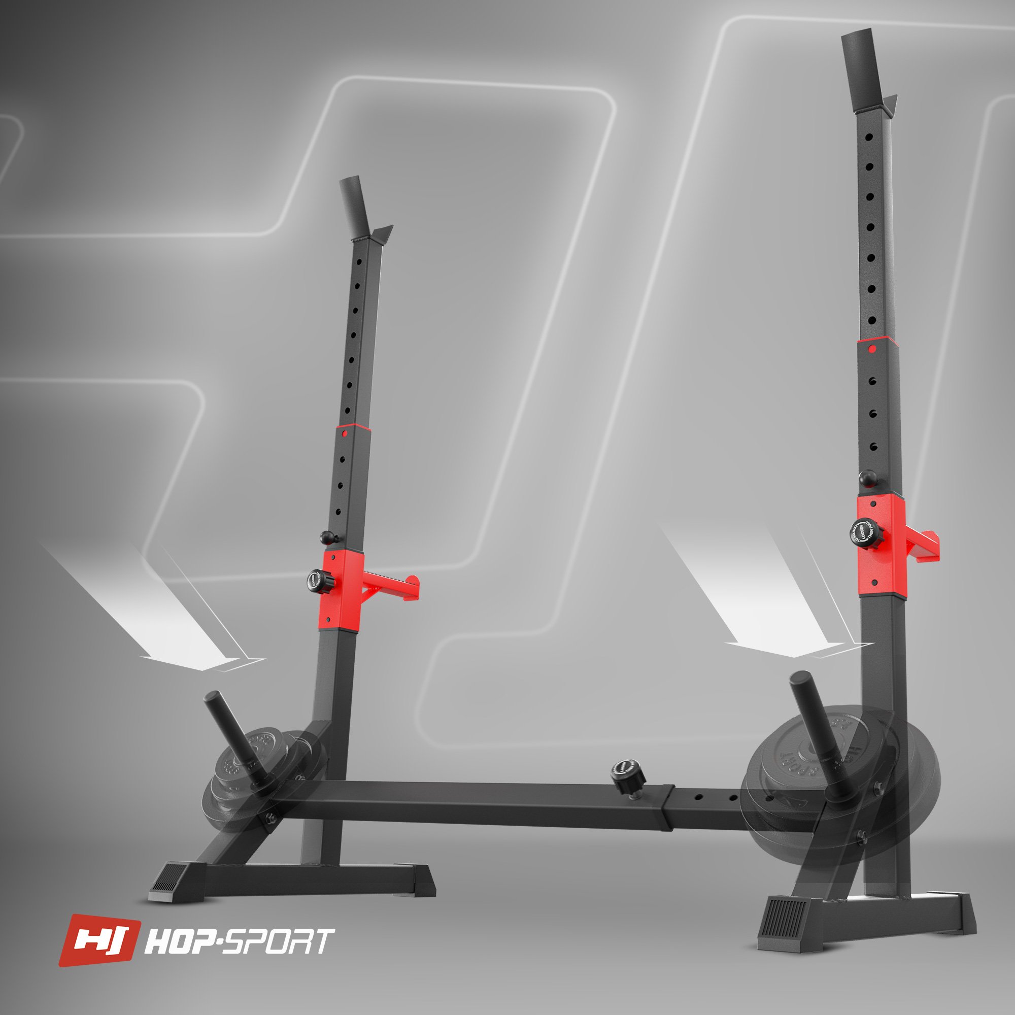 Un criterio importante nella scelta dei supporti è la possibilità di regolare la larghezza. Nel modello HS-1006L hai la possibilità di regolare la larghezza in 6 posizioni, da 85 a 111 cm. Puoi allenarti con diversi tipi di bilanciere, adattare la larghezza per esercizi con panca o squat con bilanciere.