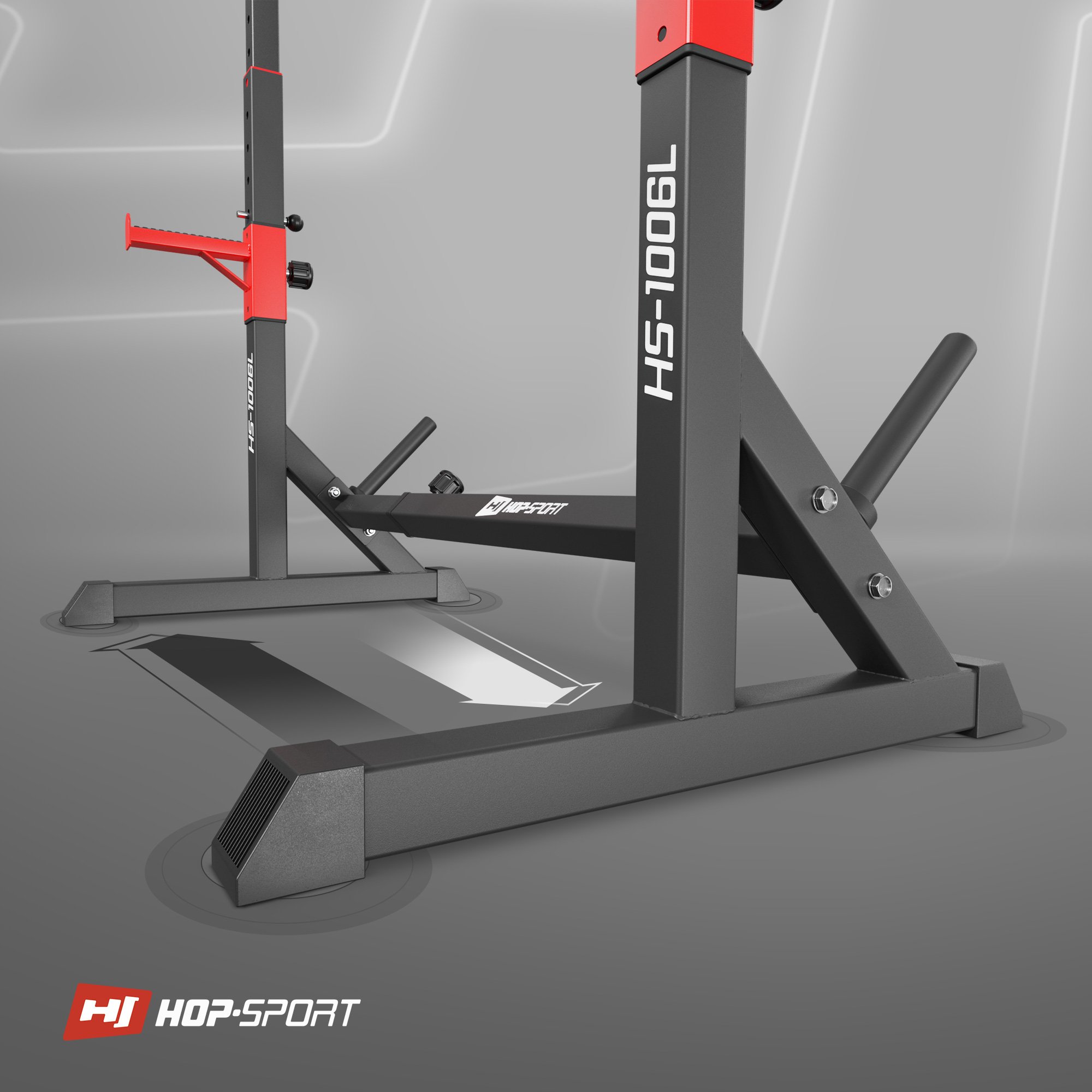 Negli esercizi di forza è molto importante la stabilità dell'attrezzatura. La dimensione adeguata della base e la sua costruzione ben pensata sono una priorità che influisce sulla tua sicurezza. I supporti HS-1006L sono dotati di una base ampia e non si spostano durante l'allenamento.