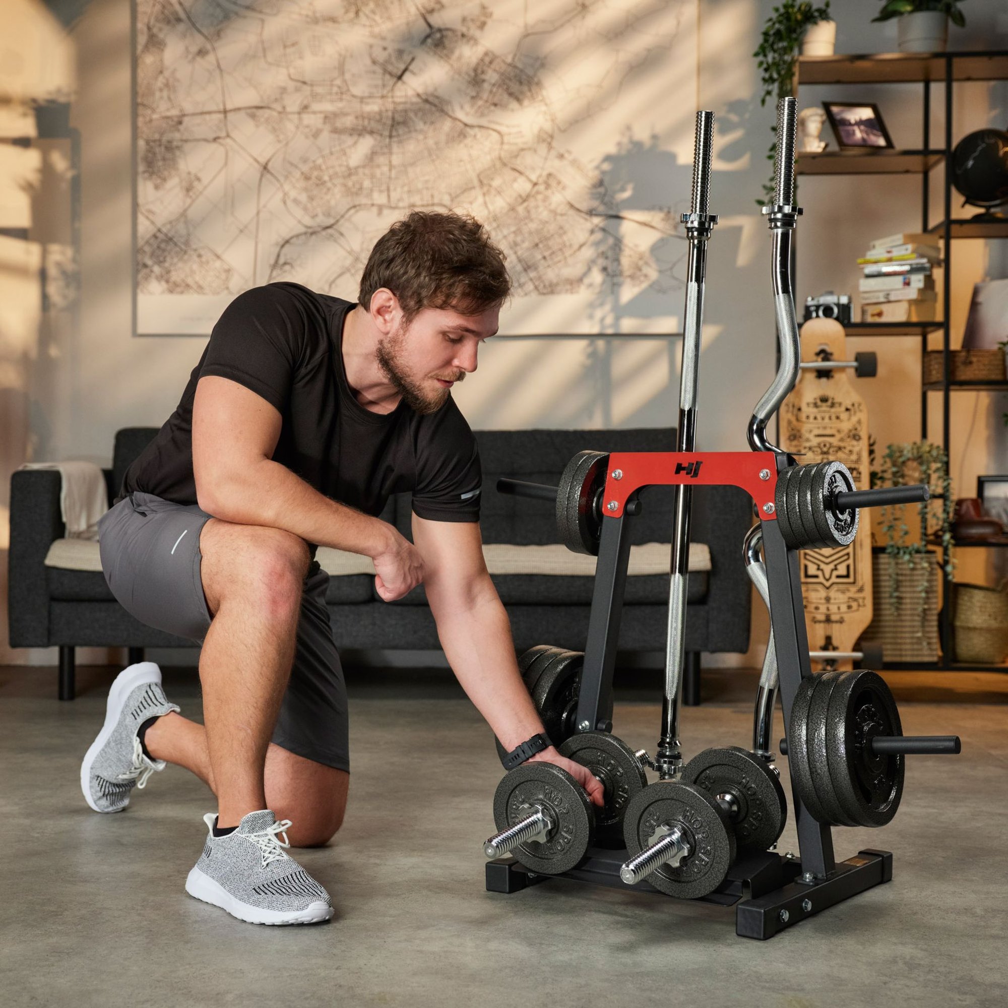 Con Hop-Sport ti alleni comodamente! Nel modello HS-1008A hai a disposizione quattro aste su cui puoi riporre i pesi. Ogni asta ha una lunghezza di 20 cm e un diametro di 25 mm. Inoltre, ciascuna di esse è dotata di limitatori in gomma, grazie ai quali i pesi che riponi non si urteranno contro il tronco del supporto.