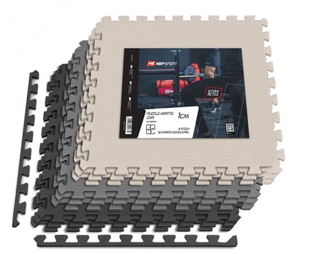 Il Tappetino Puzzle EVA 1cm 9 pezzi HS-A010PM nero/bianco/grigio è un prodotto versatile, che offre una protezione ideale del pavimento durante gli allenamenti a casa.