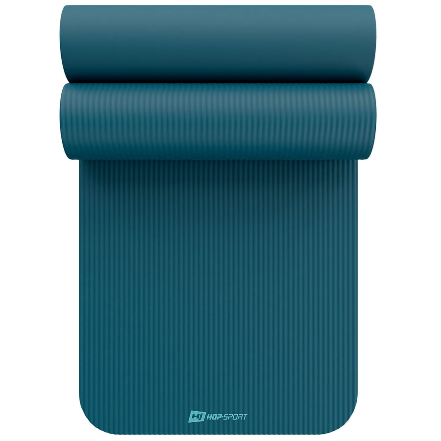 Tappetino NBR antiscivolo e resistente, colore turchese, spessore 1cm, marca Hop-Sport. Dimensioni adattate per garantire comfort e comodità durante gli esercizi.