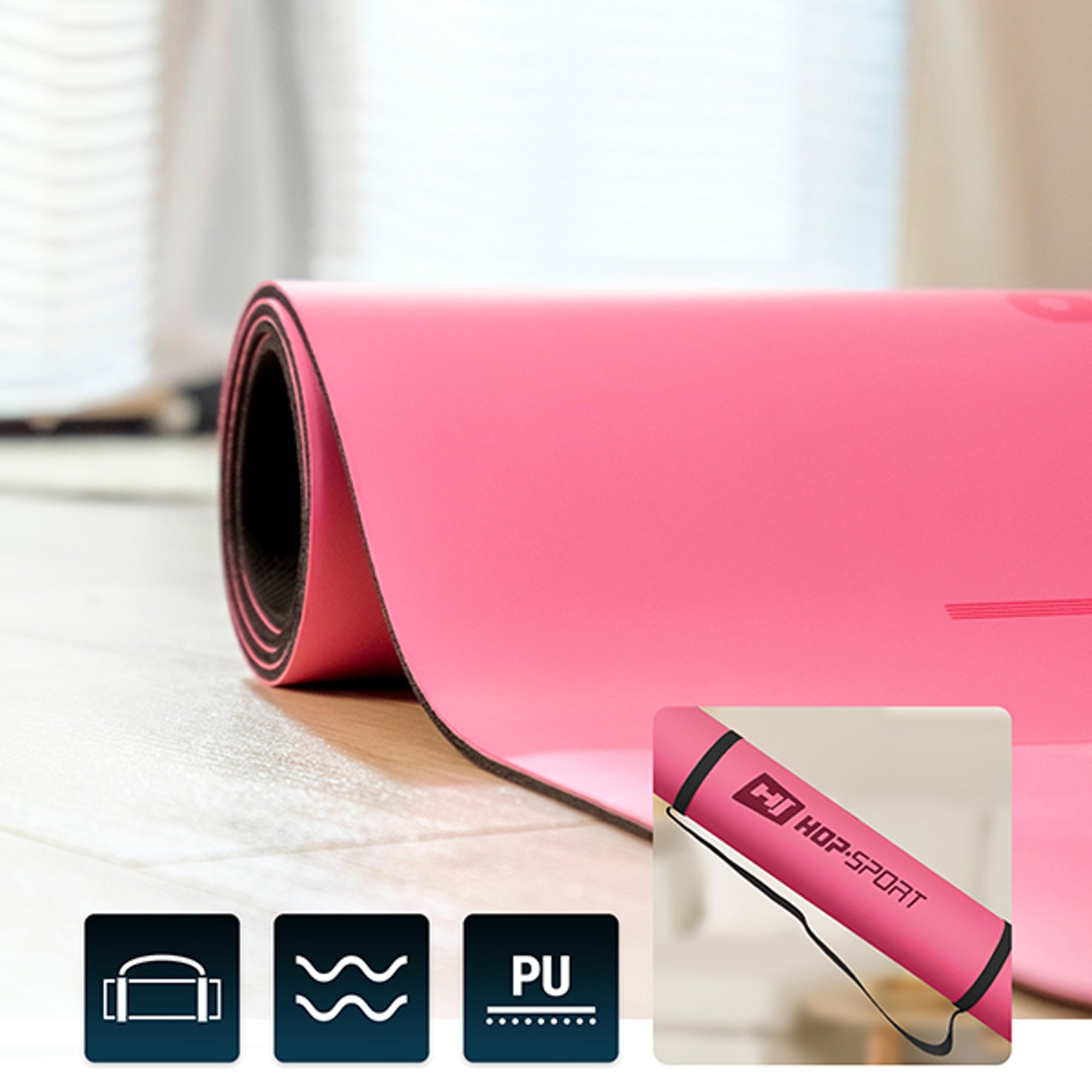 Tappetino da esercizi PU rosa è una scelta eccellente per tutti gli appassionati di yoga. Grazie alle dimensioni maggiori rispetto agli standard 183 x 68 cm , il tappetino Hop-Sport offre uno spazio comodo per gli esercizi, senza la necessità di cambiare posizione frequentemente. Le linee speciali, le cosiddette alignment lines , realizzate con tecnica laser, aiutano a posizionare correttamente il corpo durante l'esecuzione delle varie asana. La combinazione di materiali resistenti ed elastici come gomma e materiale PU, che presentano anche proprietà antiscivolo , garantisce la massima aderenza del tappetino al suolo, permettendoti di concentrarti al 100% sugli esercizi, senza alcuna preoccupazione per lo spostamento del tappetino.