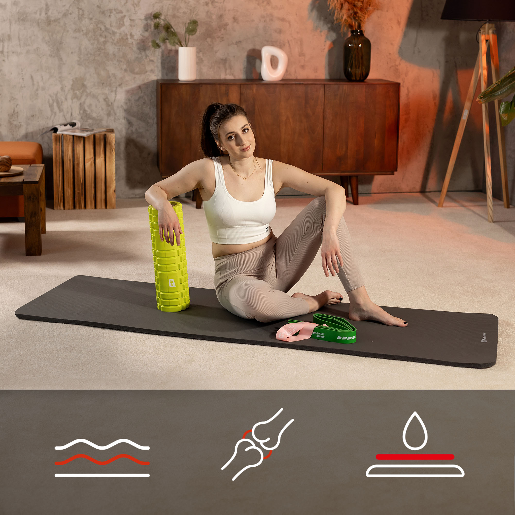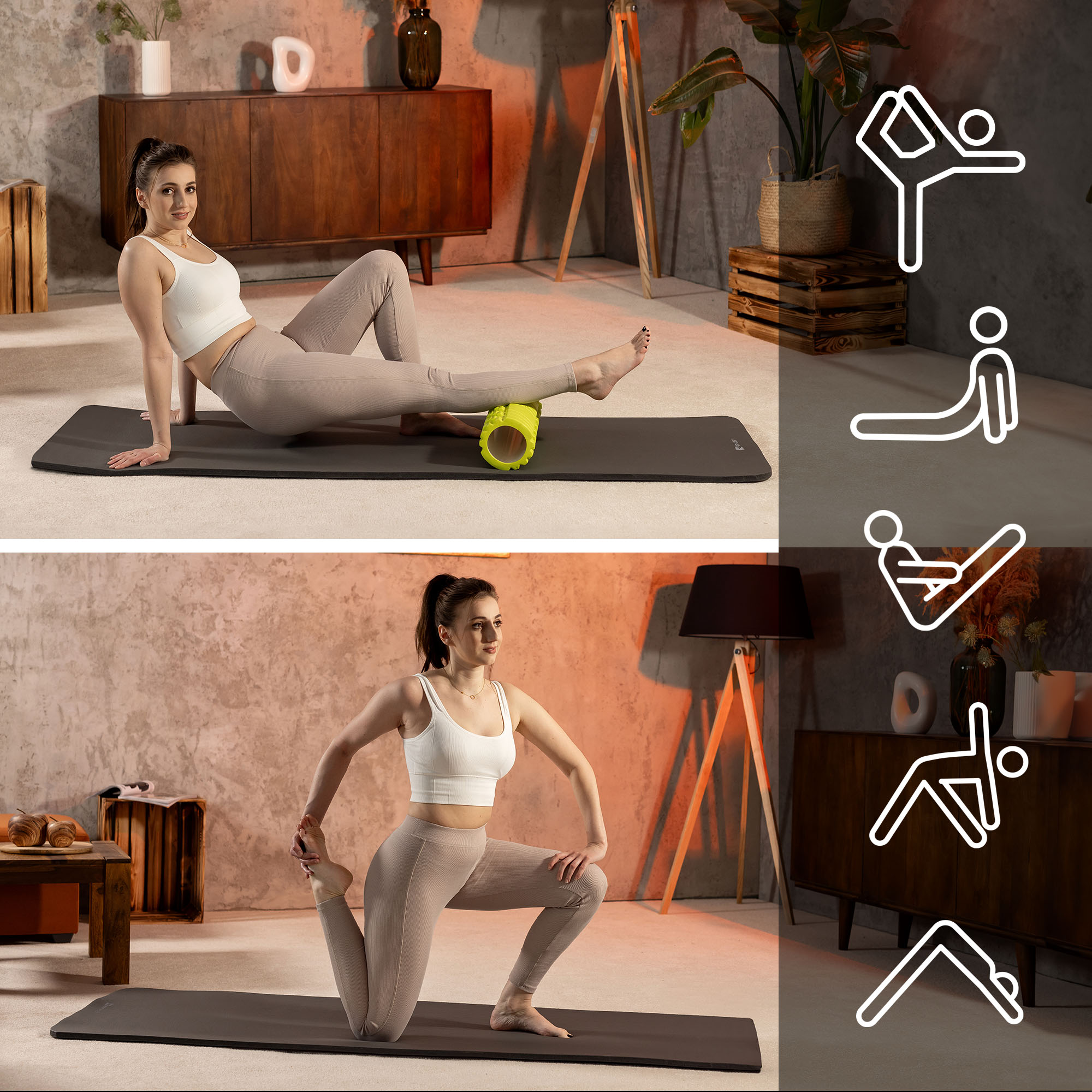 Il tappetino NBR 1 cm è adatto a vari tipi di esercizi. Puoi allenarti su di esso sia yoga, pilates e fare i cosiddetti esercizi a basso impatto, come plank, piegamenti o esercizi addominali. La combinazione dello spessore di 1 cm con le dimensioni maggiori del tappetino garantisce comfort e sicurezza in ogni sessione di allenamento. Inoltre, la struttura unica del tappetino offre un'ottima aderenza, che consente di mantenere stabilmente le posizioni e di eseguire con precisione movimenti o asana complessi.