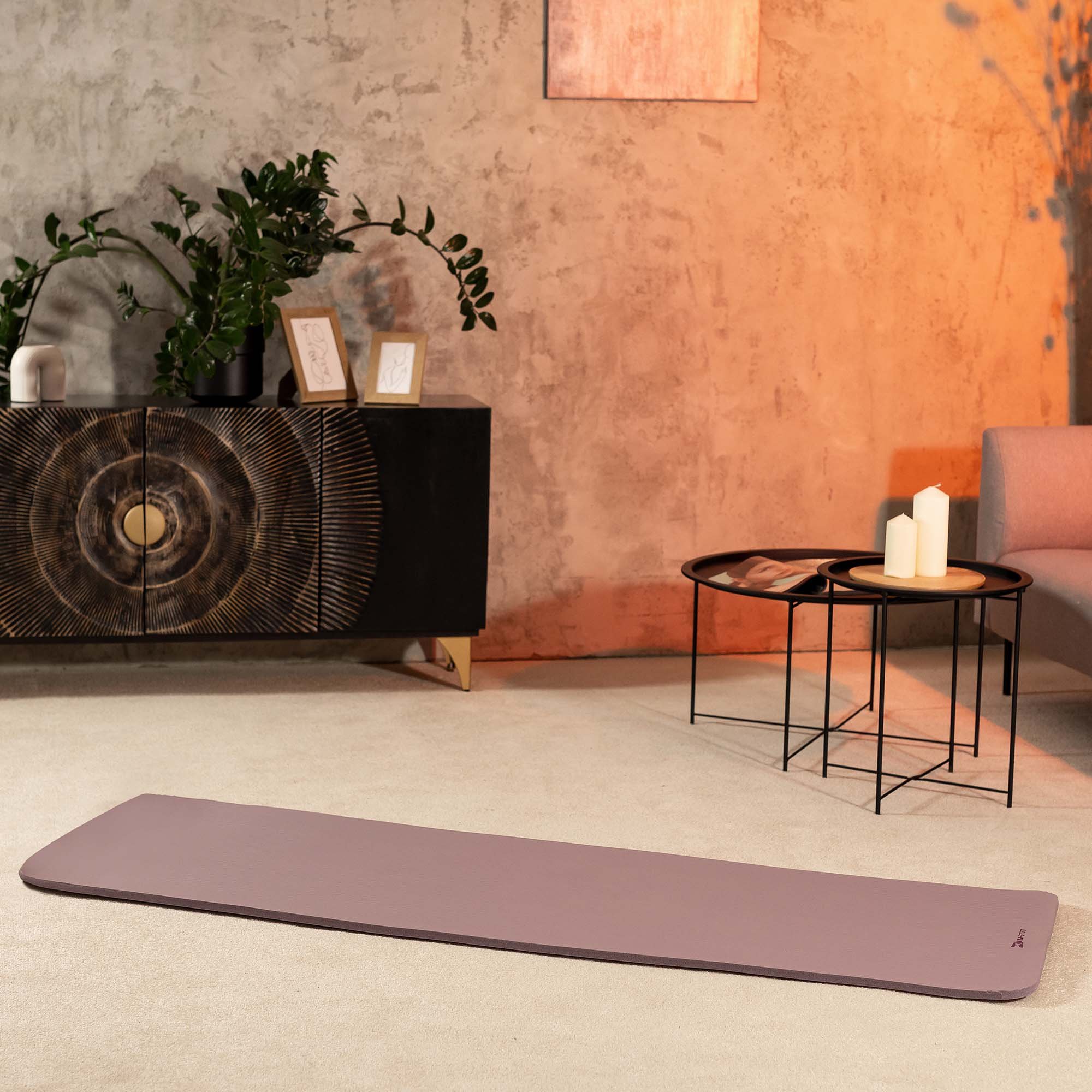 Tappetino NBR antiscivolo e resistente color lavanda di 1 cm di spessore del marchio Hop-Sport. Dimensioni adattate alle esigenze per garantire comfort e comodità durante gli esercizi.