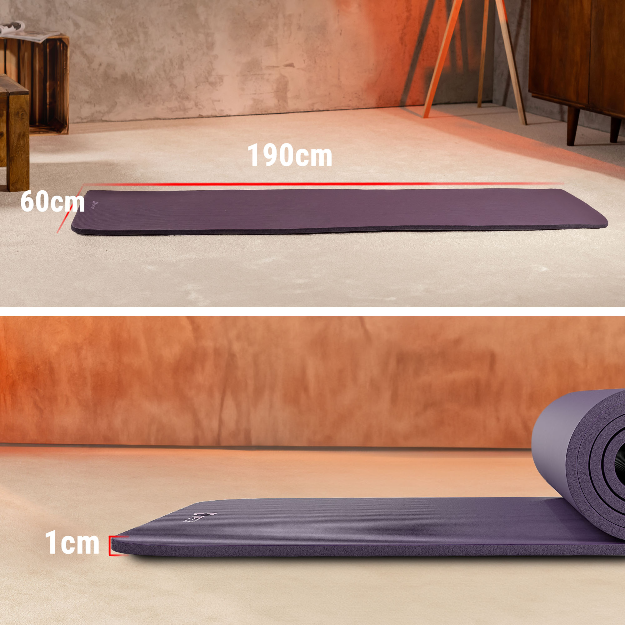 Tappetino NBR viola antiscivolo e resistente con uno spessore di 1cm del marchio Hop-Sport. Le dimensioni adatte alle esigenze garantiscono comfort e comodità durante l'allenamento.