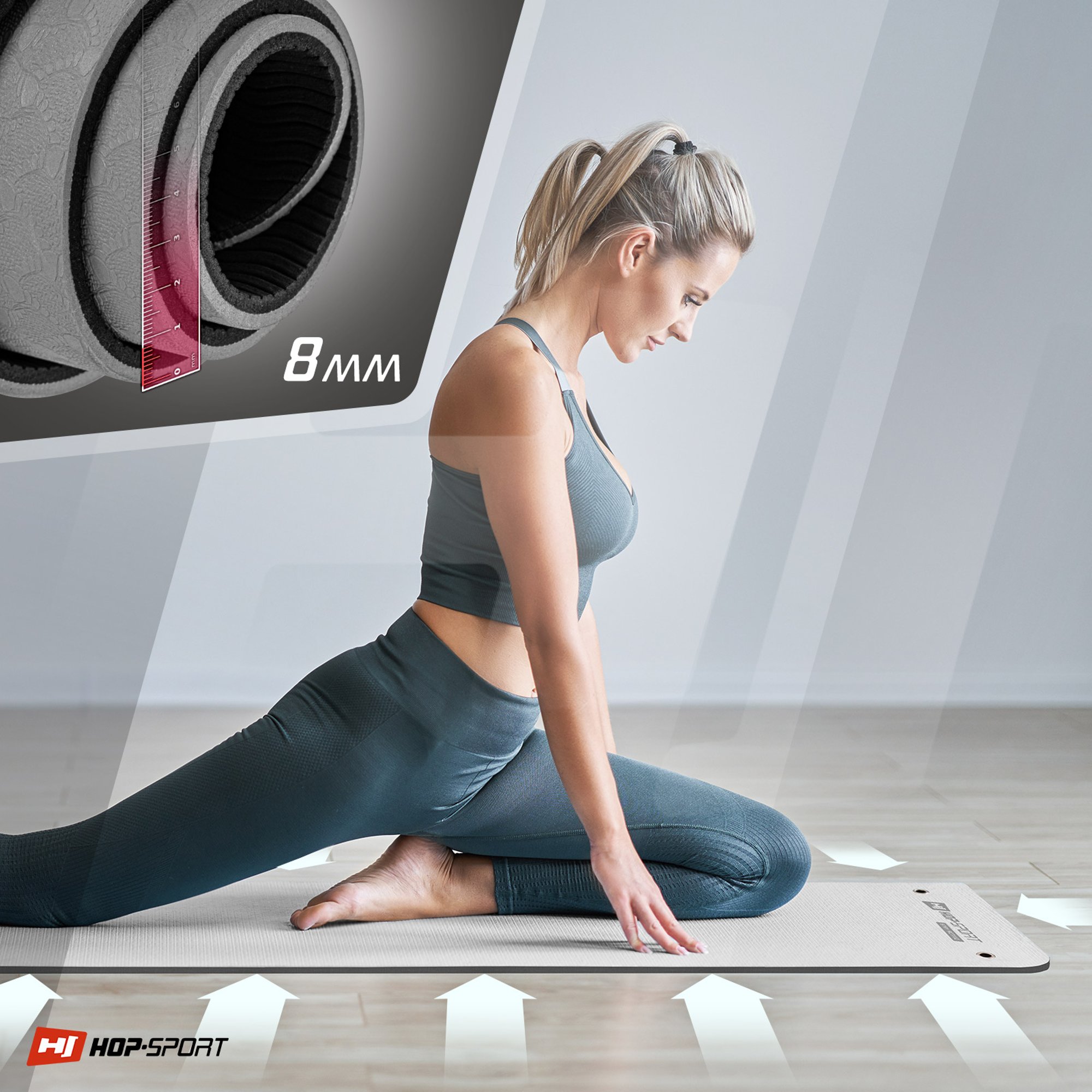 Grazie al suo peso (1200 g) il tappetino HS-T008GM è leggero , il che è particolarmente importante se prevedi di portarlo agli allenamenti di yoga o ai club fitness. Inoltre, la realizzazione in schiuma TPE lo rende flessibile e resistente . Nonostante l'arrotolamento quotidiano per il trasporto o lo stoccaggio, il tappetino non si deforma, mantenendo la sua elasticità e resilienza.