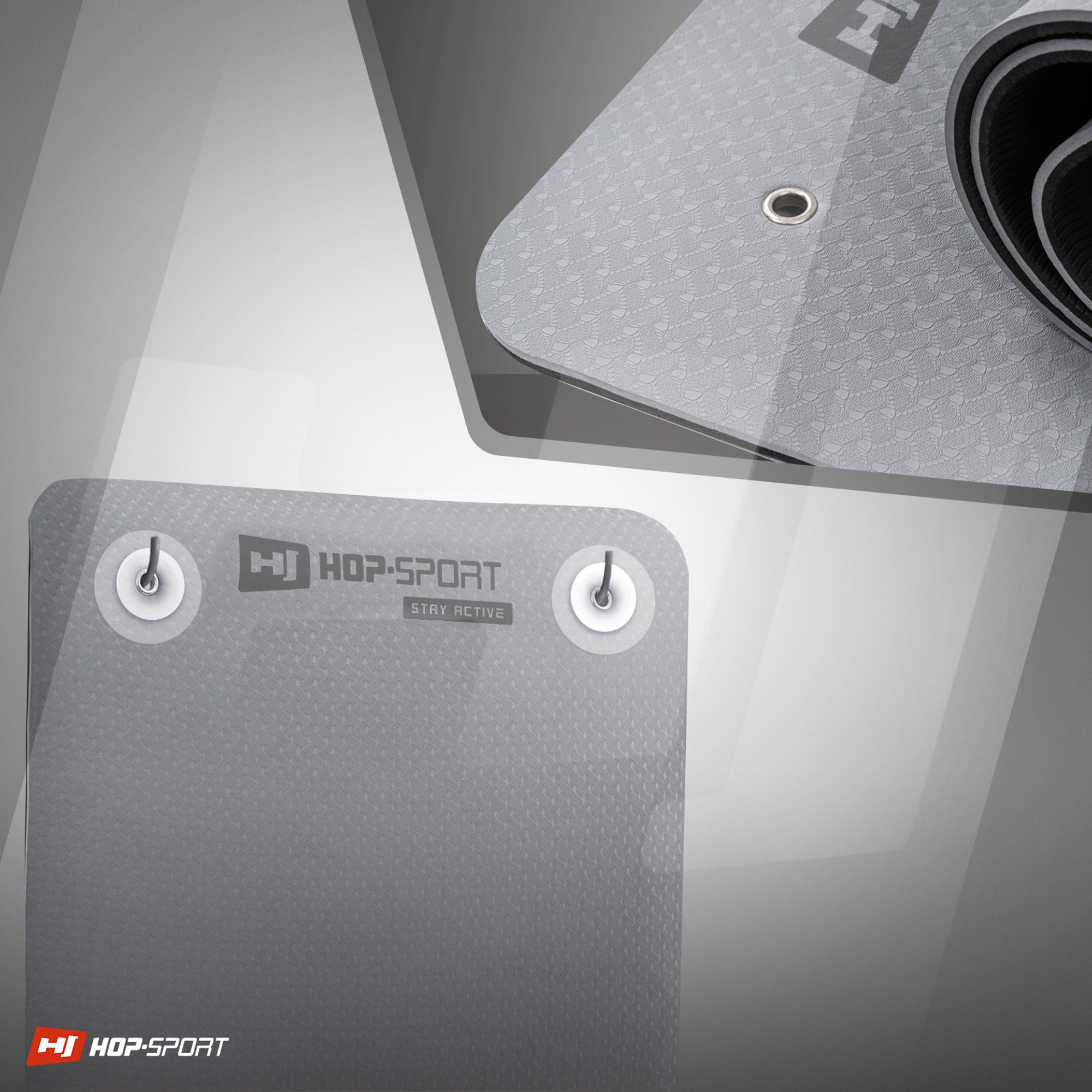 Due fori con una distanza di 49 cm , situati su uno dei lati corti del tappetino HS-T008GM, permettono di appenderlo su un appendiabiti o supporto. Conservato in questo modo, il tappetino non è arrotolato, quindi sarà subito pronto per l'allenamento – non devi perdere tempo a raddrizzarlo prima di iniziare gli esercizi.