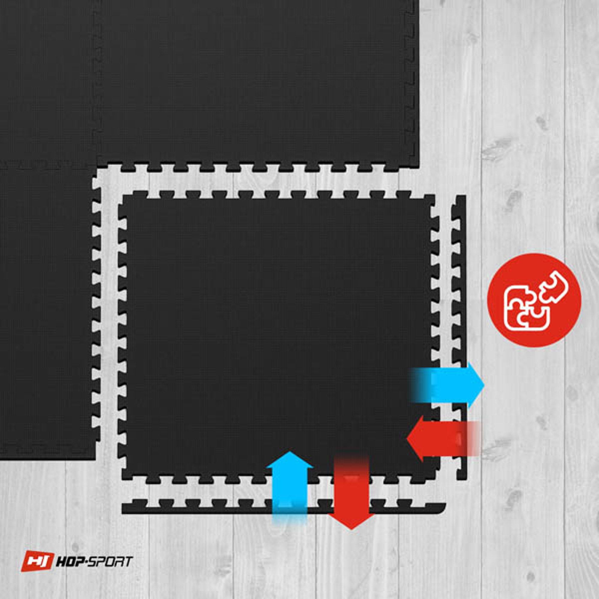 Il tappetino HS-A010PM, grazie allo spessore di 1 cm, offre un'eccellente protezione per pavimenti in pannelli, legno o piastrelle di ceramica. Riduce il rischio di graffi o sporco causati da attrezzature da allenamento o accessori per la forza. Inoltre, il tappetino aumenta l'ammortizzazione e la stabilità delle attrezzature posizionate su di esso. Riduce efficacemente il rumore e le vibrazioni che si verificano durante un allenamento intenso. Il tappetino Puzzle, grazie alla durezza e all'elasticità ottimali del materiale, è ideale per esercizi ginnici come aerobica, fitness, pilates o yoga. Può essere utilizzato anche come base durante l'allenamento di karate o judo. Il materiale antiscivolo protegge dagli infortuni.