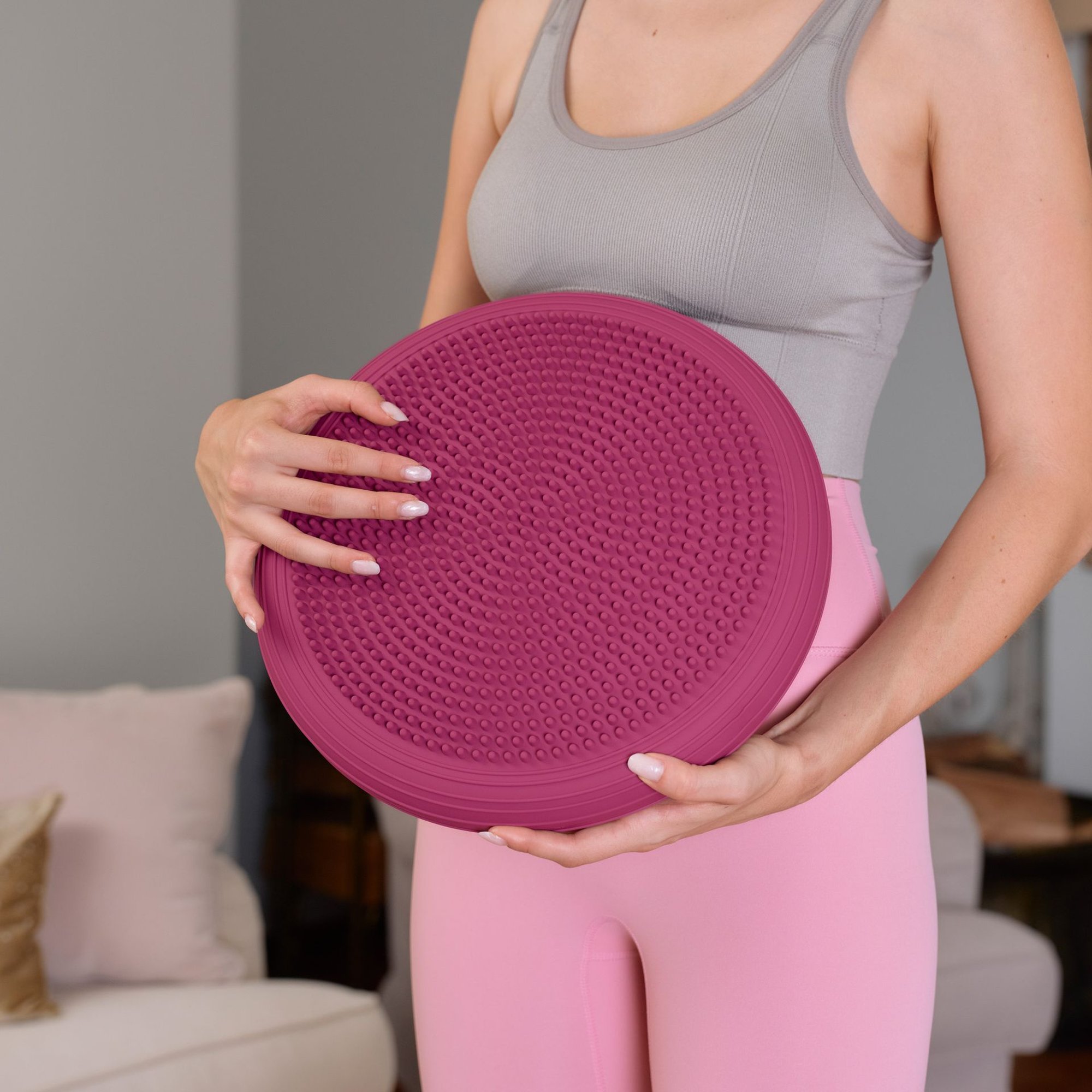 Da un lato del cuscino sensoriale si trovano piccoli rilievi massaggianti, mentre dall’altro la superficie è liscia. Puoi utilizzare il cuscino liberamente, in base alle tue preferenze. I rilievi offrono un piacevole massaggio durante gli esercizi, stimolano la circolazione sanguigna e aumentano l’efficacia dell’allenamento.