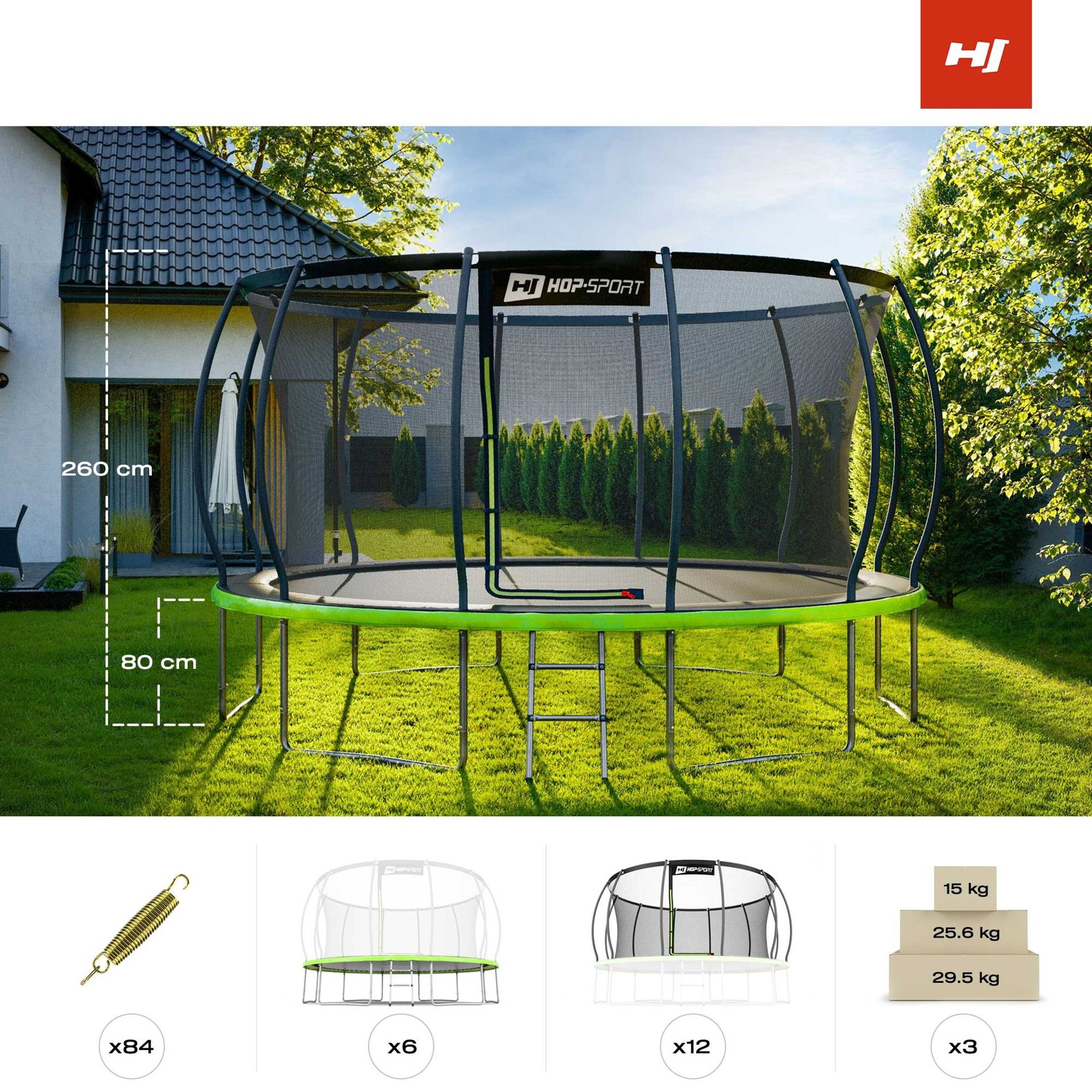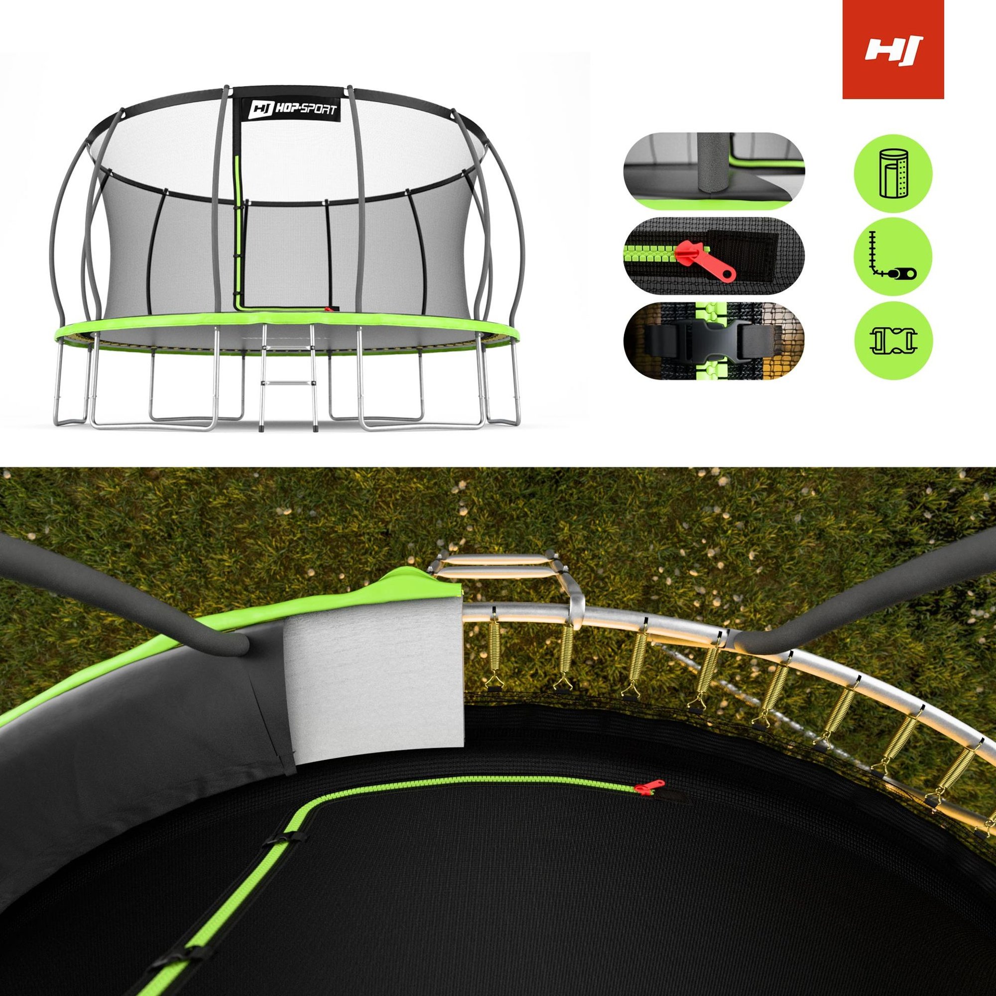Il trampolino Hop-Sport HS-PT14I è una scelta eccellente per tutta la famiglia! È perfetto sia per l'uso quotidiano che per incontri familiari o feste all'aperto. La struttura solida e le numerose protezioni garantiscono un gioco sicuro e confortevole per bambini e adulti. Inoltre, la copertura protettiva delle molle è resistente ai raggi UV, il che garantisce la sua durata a lungo termine e un aspetto estetico per anni.
