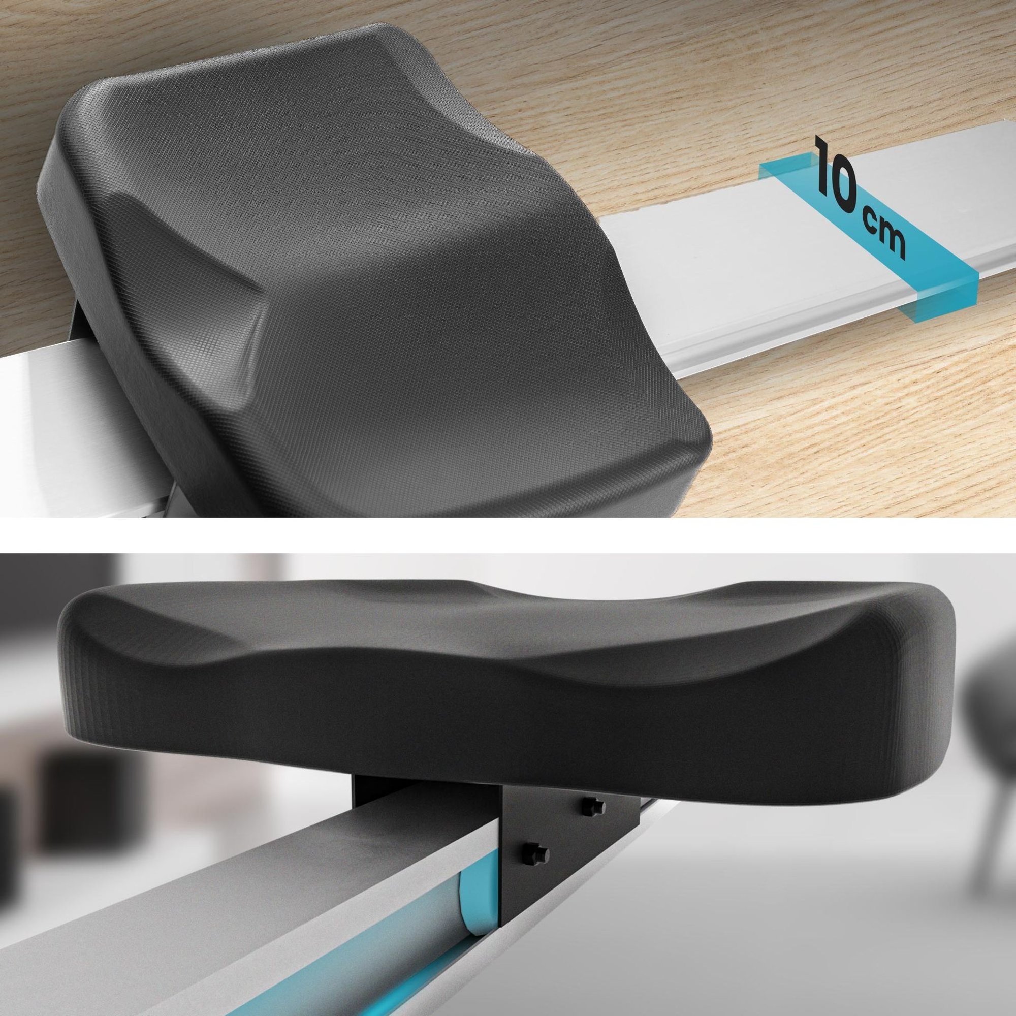 Sedile morbido, anatomicamente sagomato, garantisce comfort anche durante gli esercizi più intensi, e le sue dimensioni ottimali consentono di assumere una posizione stabile durante la vogata. I rulli con cuscinetti garantiscono un movimento fluido del sedile lungo la guida.